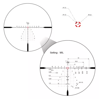 Прицельная сетка VET-RAR 2 расположена в первой фокальной плоскости и изменяет свой масштаб согласно установленной оптической кратности.