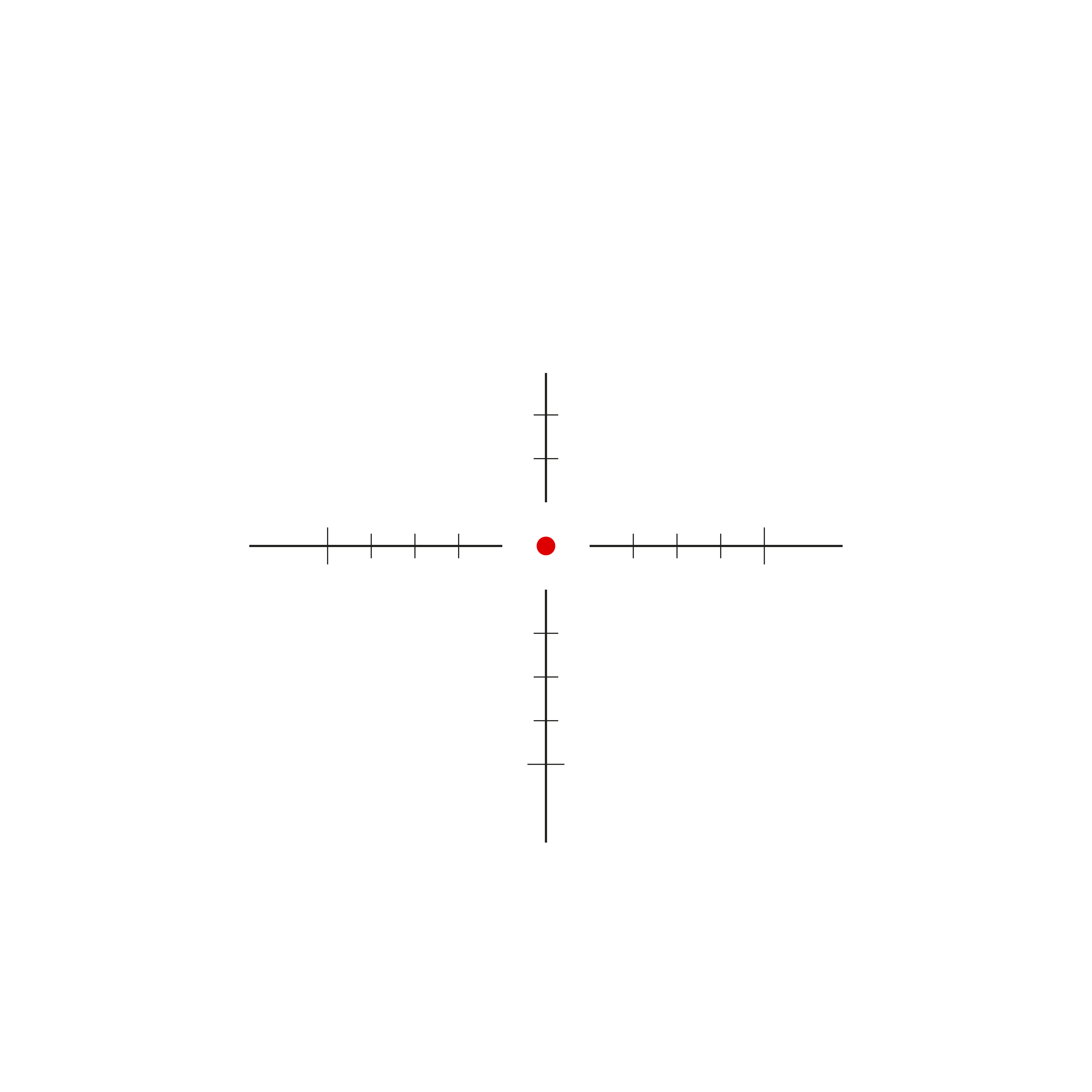 Пользователю предоставлен выбор из 5 видов тактических сеток в 5 цветах (белый, черный, красный, зеленый, синий). В зависимости от личных предпочтений и условий наблюдений можно подобрать наиболее подходящий вариант.