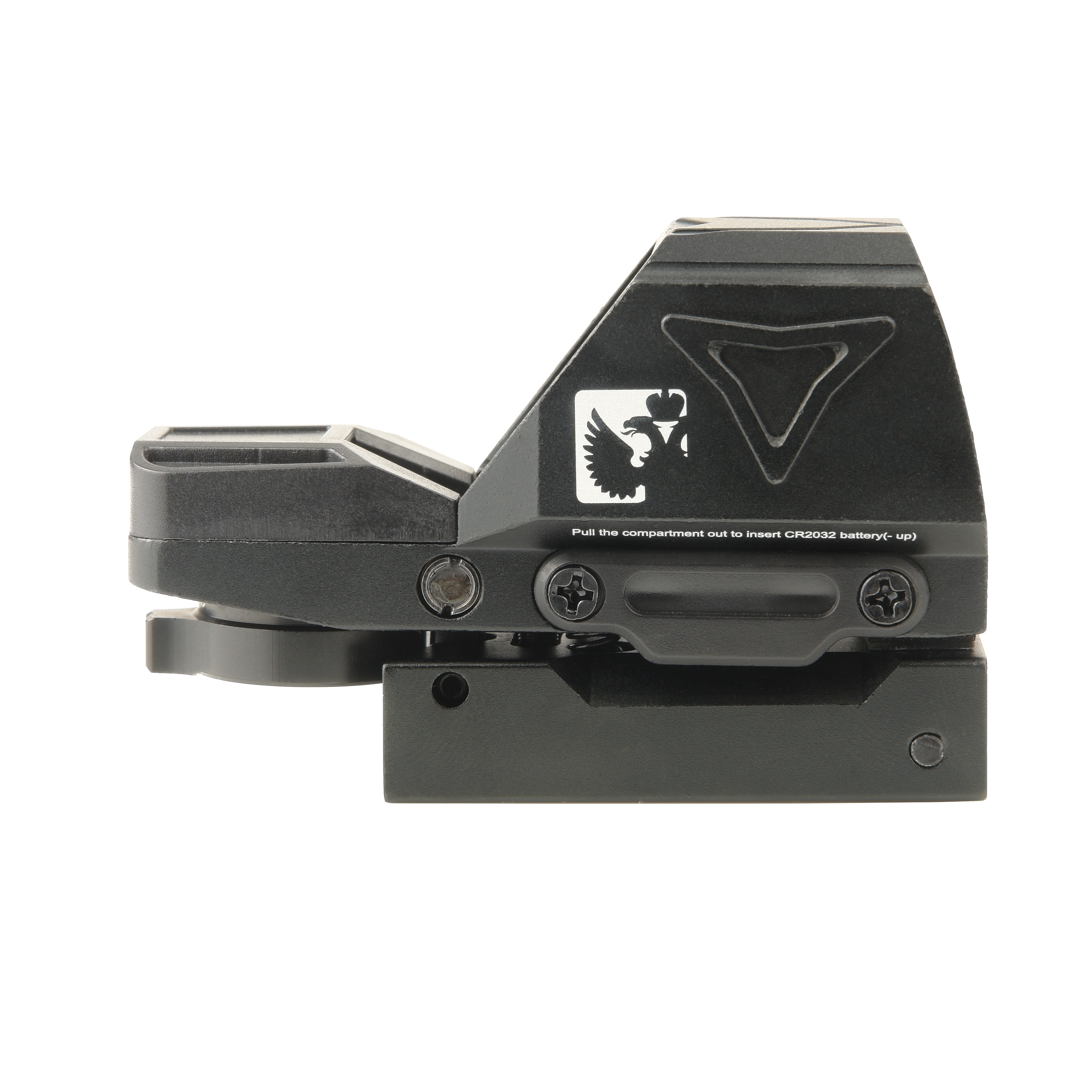 Подсветка прицела питается от батареи CR2032. Герметичный выдвижной слот для батареи находится с правой стороны прицела и закреплен двумя винтами.