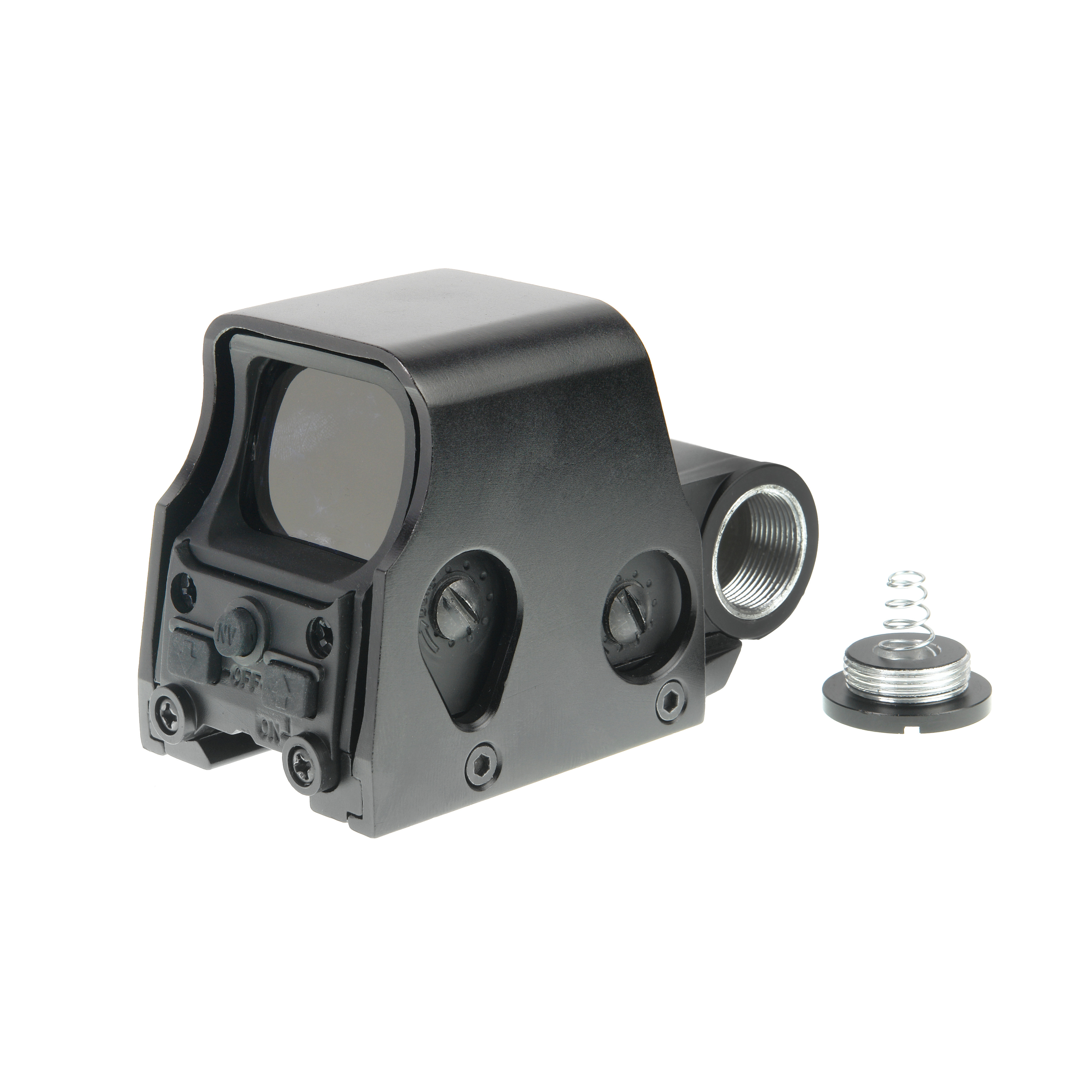 Корпус коллиматора с установочной базой на планку «Weaver» дополнительно защищен металлическим кожухом от случайных ударов при использовании.
