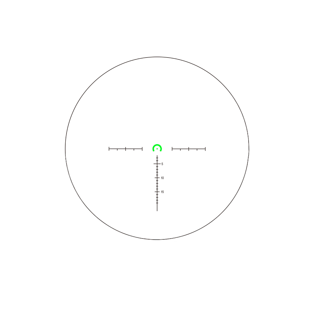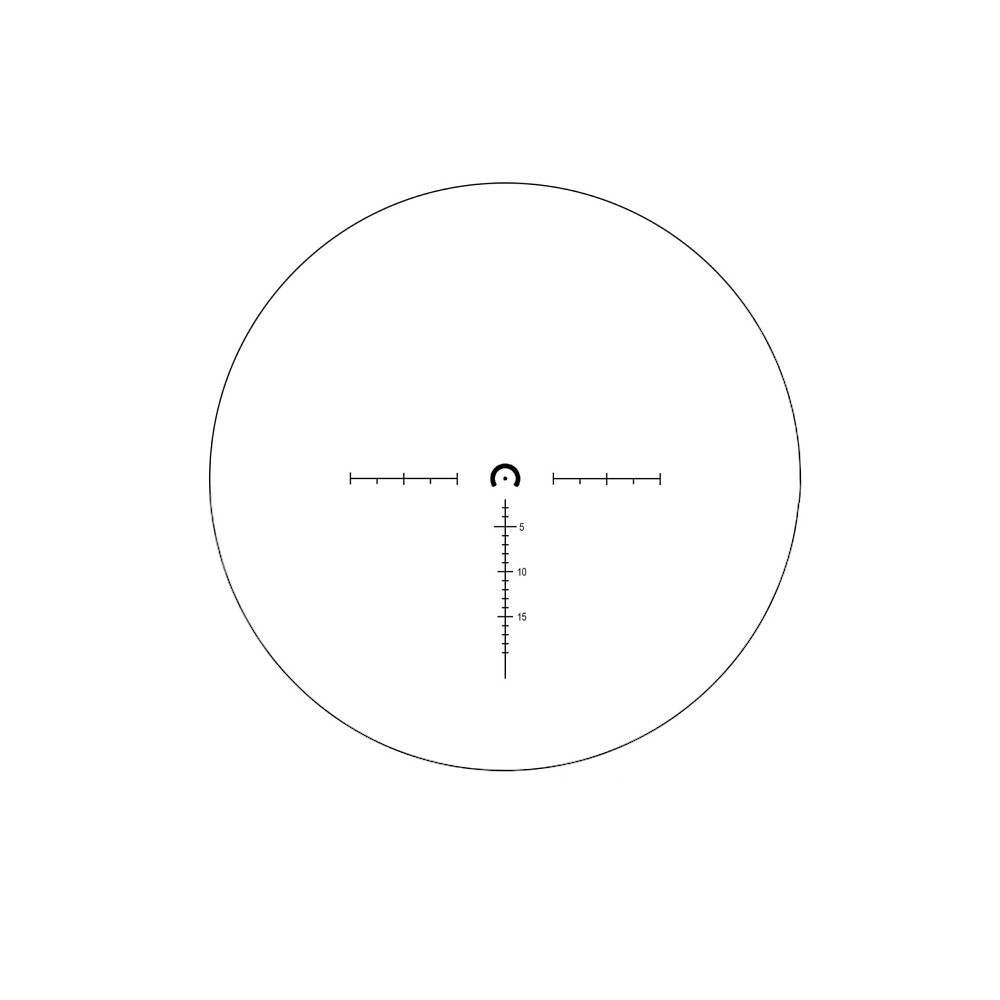 Баллистическая прицельная сетка со шкалой и прицельной маркой расположена во второй фокальной плоскости прицела. При увеличении кратности прицела, размер сетки не меняется.
