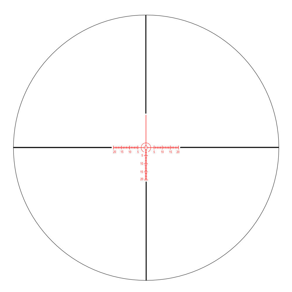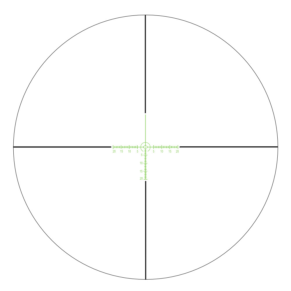 Прицельная сетка со шкалой поправок вытравлена на стекле и расположена во 2 фокальной плоскости окуляра. При изменении кратности прицела размер сетки в поле зрения не меняется. Сетка хорошо видна при пасмурной погоде и в сумерках благодаря зеленой/красной подсветке с плавно регулируемой яркостью.