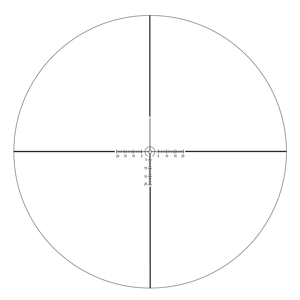 Прицельная сетка со шкалой поправок вытравлена на стекле и расположена во 2 фокальной плоскости окуляра. При изменении кратности прицела размер сетки в поле зрения не меняется. Сетка хорошо видна при пасмурной погоде и в сумерках благодаря зеленой/красной подсветке с плавно регулируемой яркостью.