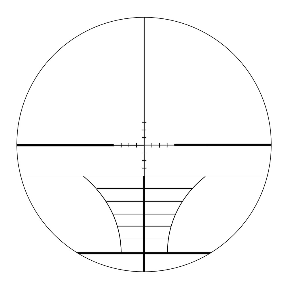 Прицельная сетка Cross Bow разработана специально для стрельбы из арбалета. Она рассчитана на небольшие дистанции стрельбы, позволяет оперативно определять расстояние до цели и вносить поправки. Сетка вытравлена на стекле и расположена во 2 фокальной плоскости.