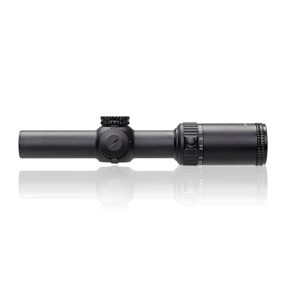 Диаметр объектива — 26 мм. Это значит, что этот прицел собирает больше света, чем аналогичный с диаметром 24 мм — примерно на 18%. Естественно, этот прицел также азотонаполненный, влагозащищенный и выдерживает погружение на глубину до 1 метра. Его светопропускание также больше 92%. Рабочий диапазон температур — от -25 до +40 градусов.