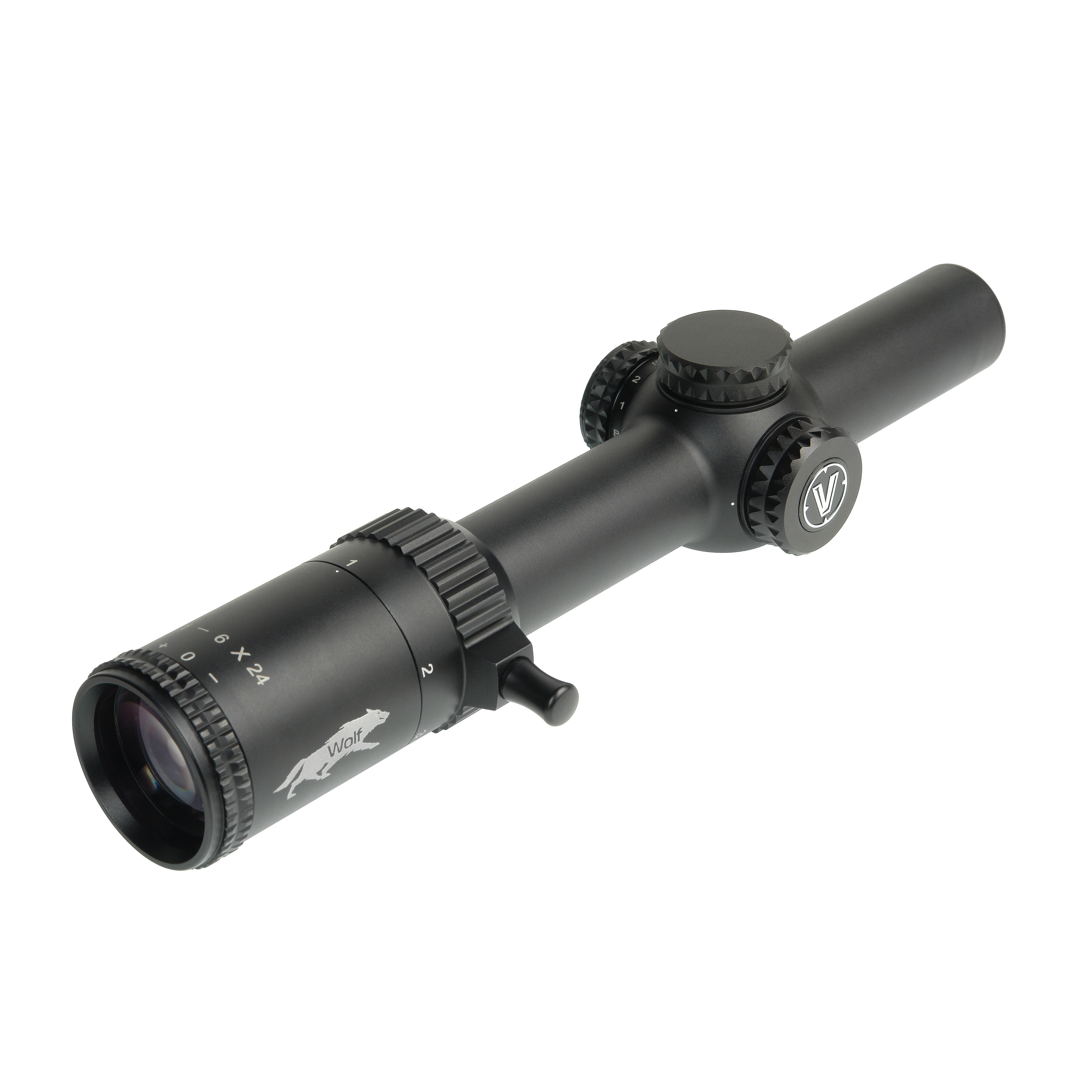 Veber Wolf 1-6х24 GB FD07 — прицел популярной серии Veber Wolf с плавно регулируемым переменным увеличением от 1х до 6х, может использоваться во время прицельной стрельбы на загонной охоте. Базовое увеличение 1х позволяет комфортно проводить прицеливание двумя глазами, а плавное переменное увеличение наводиться на цель на разных дистанциях.