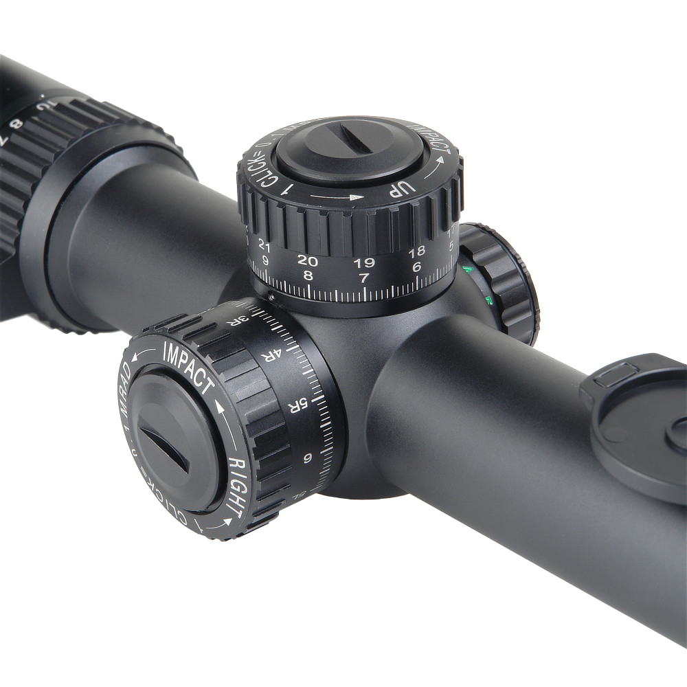 Большие тактические барабаны диаметром 4 см удобны для ввода поправок при пристрелке прицела. Щелчки барабанов четкие, но негромкие. Шкалы отградуированы в миллирадианах. Цена деления – 0,1 mrad (примерно 1 см на дистанции 100 м).