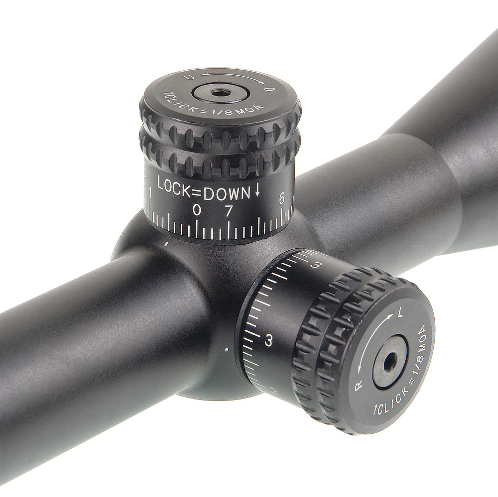 Выдвижные барабаны ввода поправок с рельефными крышками позволяют выверять прицел, не снимая перчатки в холодное время года. Поправки вводятся при полностью выдвинутых барабанах. Цена деления механизма – 1/8 МОА на дистанции 100 ярдов (около 3,75 мм на 100 м). Клики барабанов четкие, ясно различимые. Для сброса на "0" нулевая отметка на барабане совмещается с меткой на корпусе прицела, затем винт в крышке барабана затягивается с помощью ключа-шестигранника, входящего в комплект.