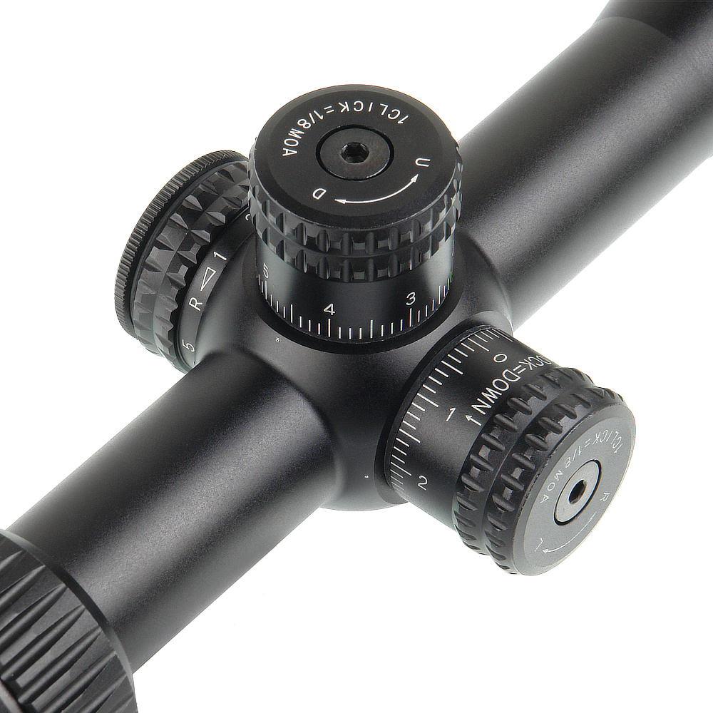 Выдвижные барабаны ввода поправок с рельефными крышками позволяют выверять прицел, не снимая перчатки в холодное время года. Поправки вводятся при полностью выдвинутых барабанах. Цена деления механизма – 1/8 МОА на дистанции 100 ярдов (около 3,75 мм на 100 м). Клики барабанов четкие, ясно различимые. Для сброса на "0" нулевая отметка на барабане совмещается с меткой на корпусе прицела, затем винт в крышке барабана затягивается с помощью ключа-шестигранника, входящего в комплект.