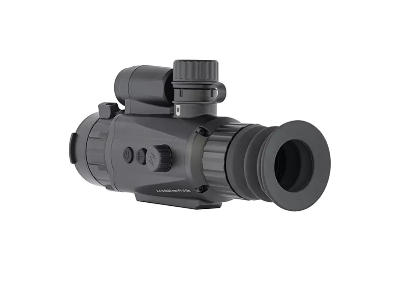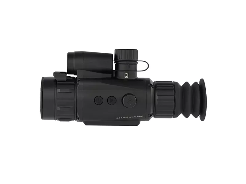 Оптимальный диапазон угла обзора 10,5x7,9° отлично подходит для сопровождения движущихся объектов и быстрого анализа локаций на минимальной кратности. Базовая кратность 2,4х и величина от 2,5м позволяют эффективно использовать тепловизор для охоты на короткой дистанции, пошаговое увеличение до 9,6х дает возможность точно поразить убойную зону с дальнего расстояния.