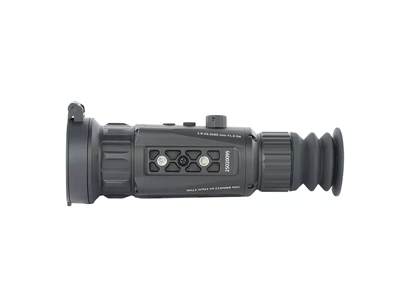 50-мм объектив из очищенного германия (Ge) обеспечивает четкое ИК-изображение без добавок. Линзы асферической формы, обработанные алмазной SPDT-технологией, обладают точной геометрией, что повышает оптические свойства. Гидрофобные AR и DLC-покрытия защищают линзы от запотевания и атмосферных воздействий, сохраняя четкий обзор в любых условиях.