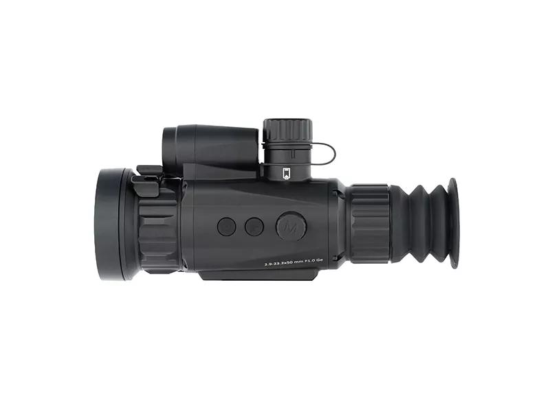 При углескопическом обзоре 8,8x6,6° ИК-прицел Artelv хорошо подходит для быстрого определения целей с безопасным удалением и наблюдения за динамичными объектами с дальнего рубежа. Базовая оптическая кратность 2,9х при минимальной дистанции в 5 м позволяет эффективно использовать прицел-тепловизор на короткой дистанции, пошаговое цифровое масштабирование 1x/2x/4x/8x обеспечивает измерение в 23,2х для анализа удаленных целей.