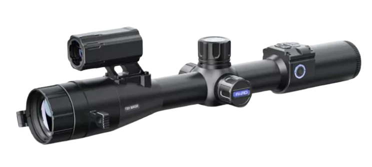 Тепловизионный прицел с дальномером PARD TS31-25LRF (2,2x) наиболее эффективен на ближних и средних дистанциях. Позволяет обнаружить лося на расстоянии до 1,1 км, измерить расстояние до выбранной цели в пределах 1 км и быстро рассчитать поправку на дальность с учётом параметров боеприпаса и внешних условий. Сочетает традиционный корпус дневных прицелов для «высокоточки» с возможностями современной тепловизионной оптики для охоты и наблюдений.