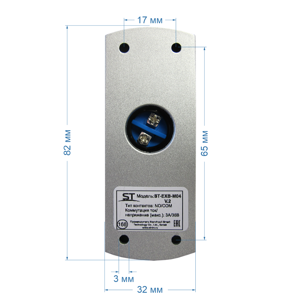 Кнопка выхода ST-EXB-M04 , Предназначена для работы в составе СКУД или других слаботочных систем.Применяется для управления электромагнитными или электромеханическими замками в составе систем домофонии, Коммутация ток/напряжение (макс.): 3А/36В, Типы контактов: NO/COM, Тип монтажа: Накладной, Механическая, –35..+55°C, IP65, Цинковый сплав, Серебряный, 80*30*25 мм