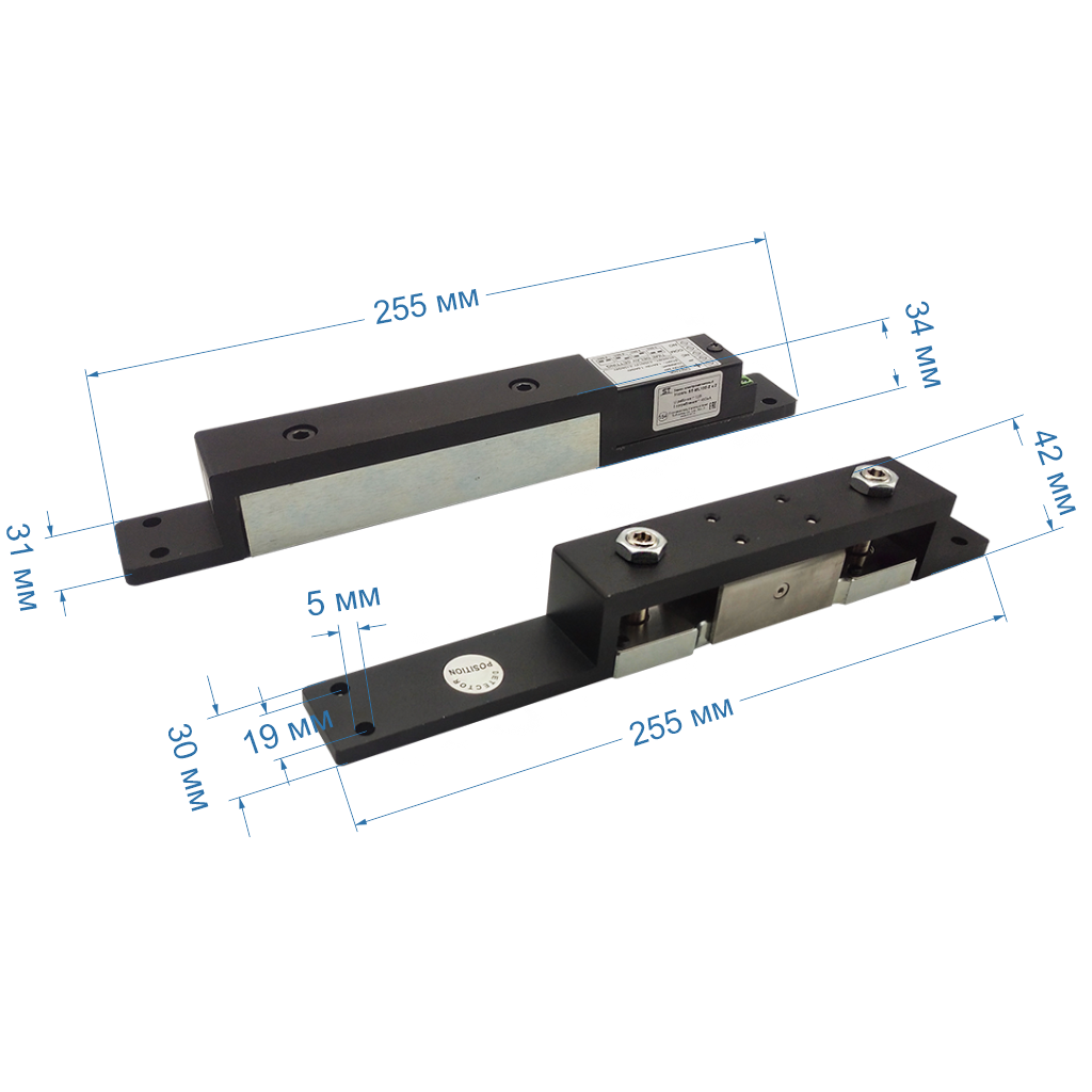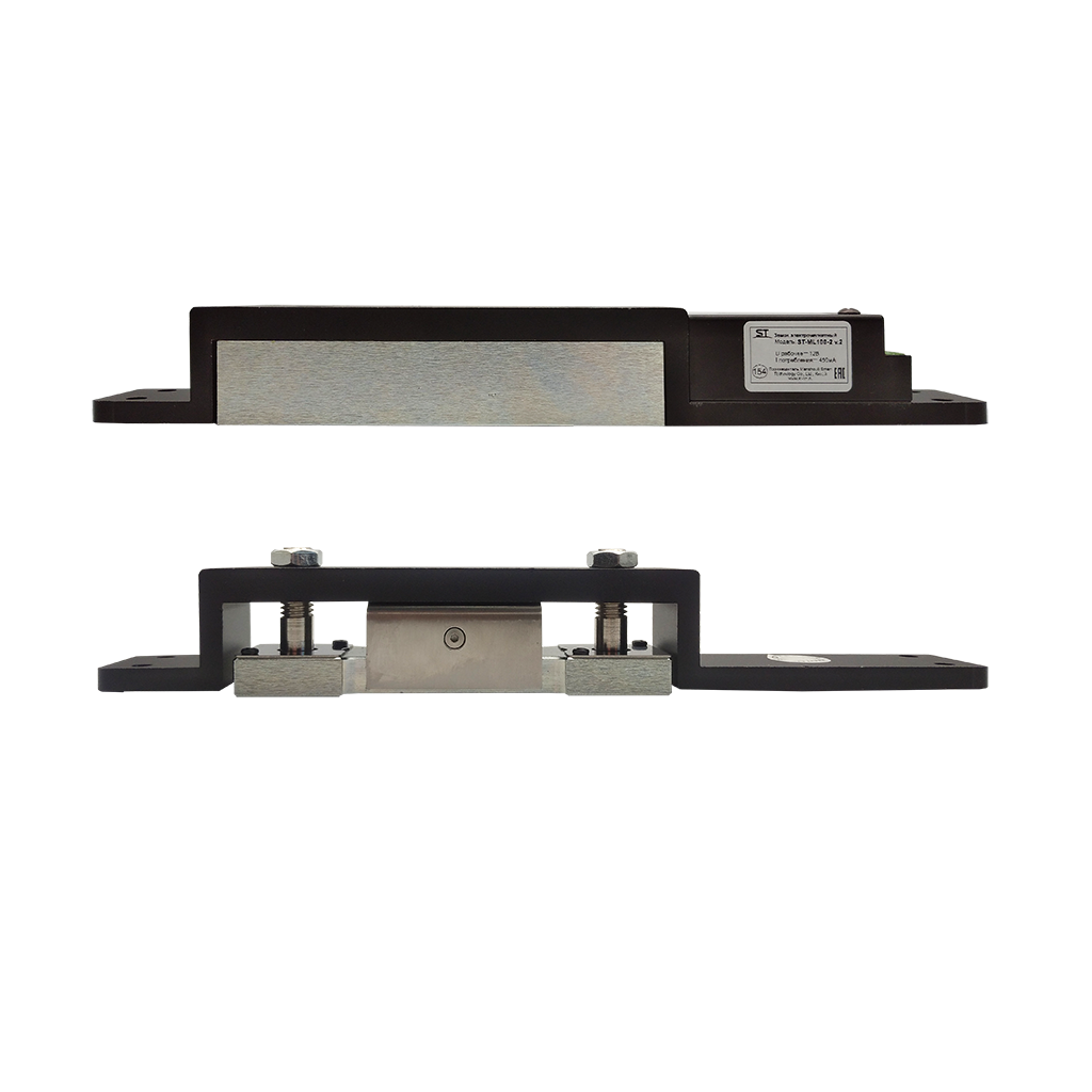 Замок электромагнитный ST-ML100-2 , Рабочее напряжение: 12/24В, Ток потребления: 12В - 220мА, 24В - 130 мА, Сила удержания: 1200кг, Алюминий, -40℃~+55℃, 30мм*6,5мм*257мм, Сигнал обратной связи: НЗ/НО, Расстояние между замком и прижимной пластиной: в пределах 4 мм, Задержка: 0/3/6/9