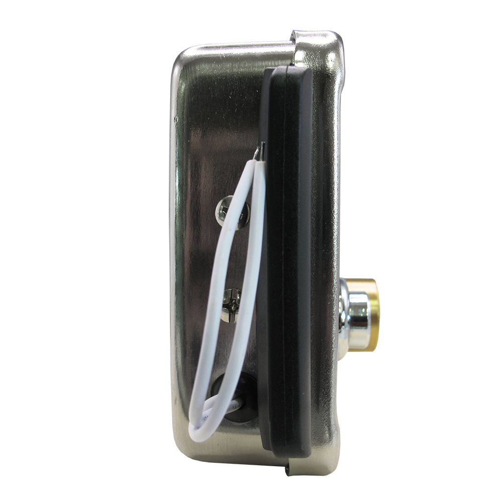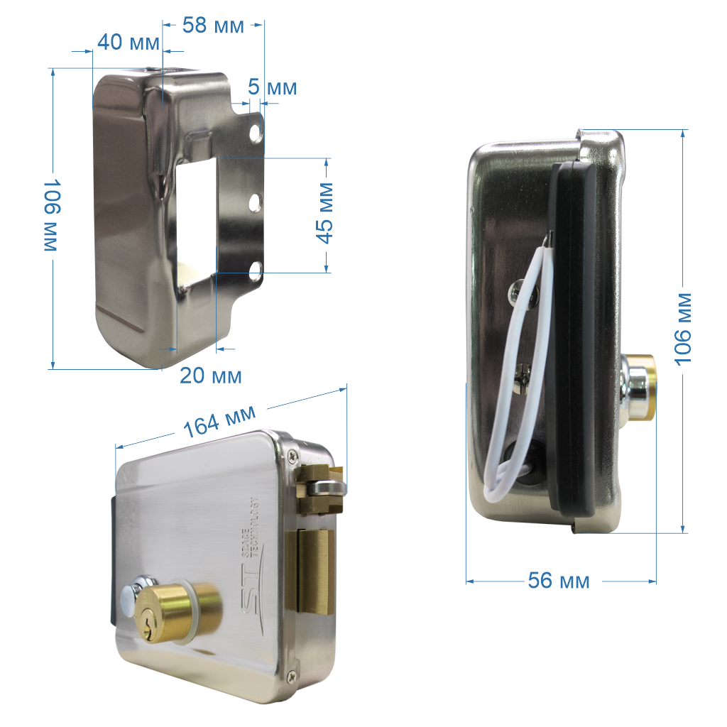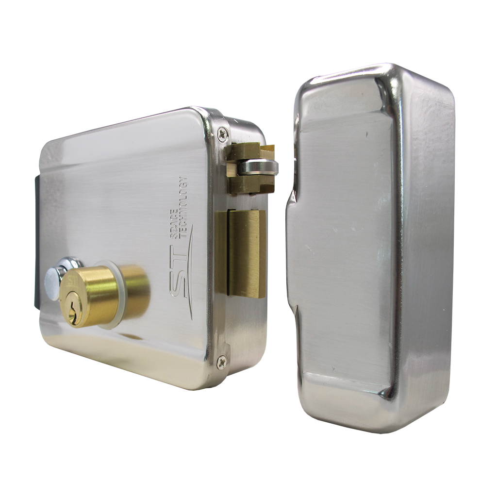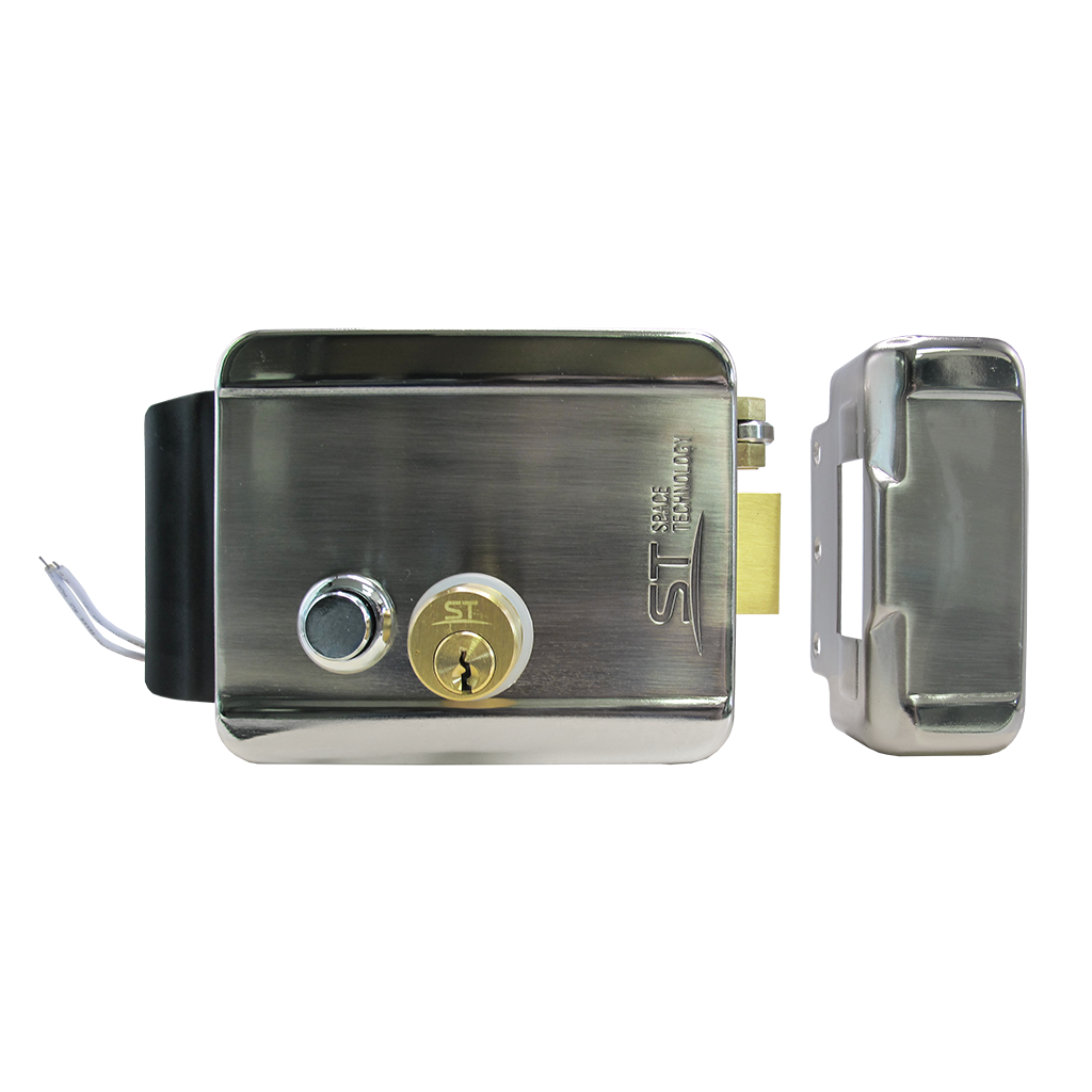 Замок электромеханический ST-EL-02 (N/2C/B/PS), Рабочее напряжение: DC12В±15%, Ток потребления: 1,7А, Время подачи отпирающего сигнала: Не более 1-3сек, Тип цилиндра: двойной, Наличие мех.кнопки/возможность блокировки кнопки: да/да, металл с нержавеющим покрытием, Степень защиты: IP55, Цвет: Хром, –40..+70°С, 125х98х36 мм