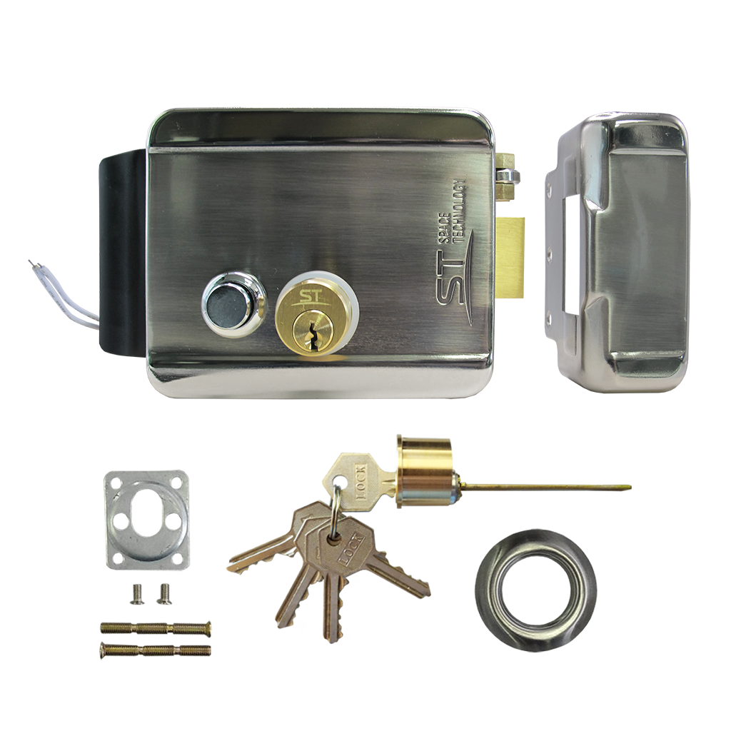 - Комплектация Замок электромеханический,ответная планка,цилиндровый механизм,установочный комплект,резиновая накладка на ручку замка,ключи-5 шт.,паспорт, упаковочная коробка