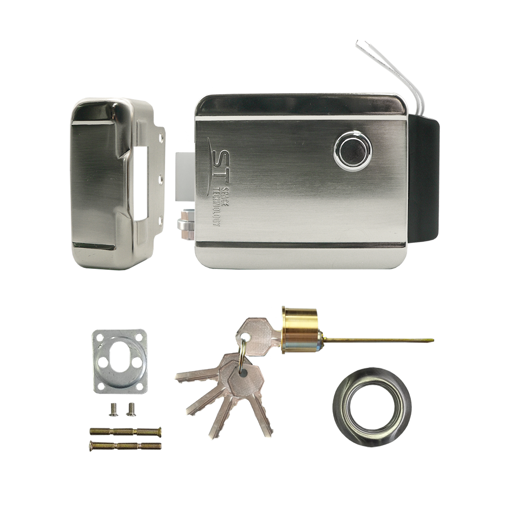 - Комплектация Замок электромеханический,ответная планка,цилиндровый механизм,установочный комплект,резиновая накладка на ручку замка,ключи-5шт.,,паспорт, упаковочная коробка