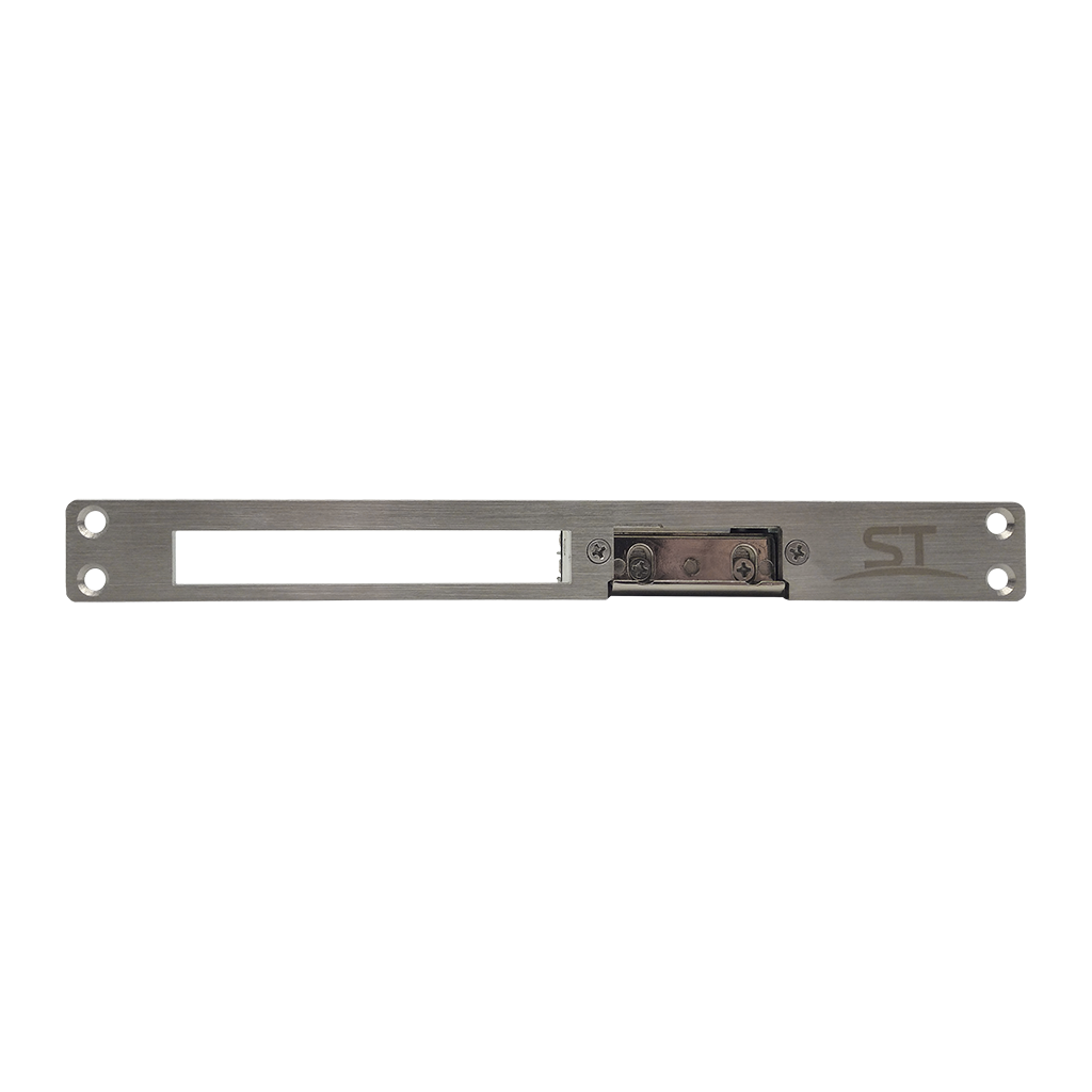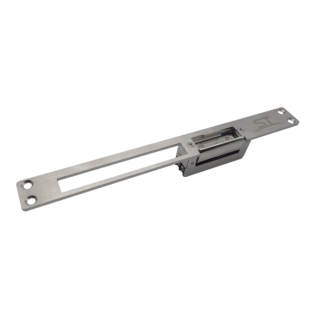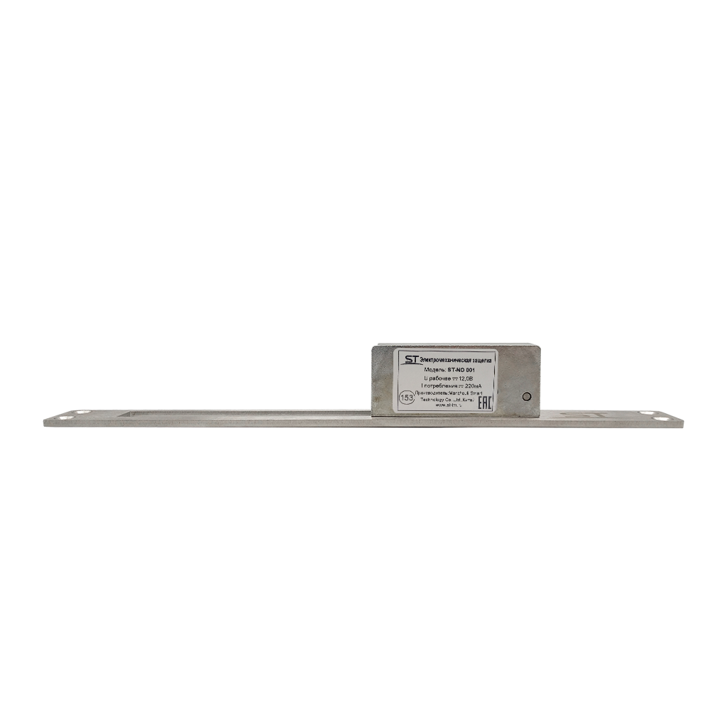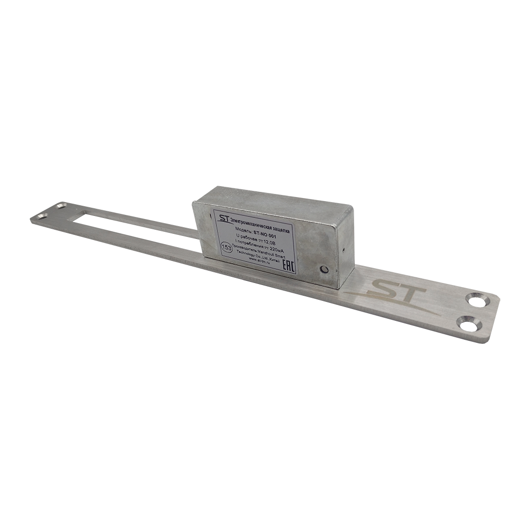 Защелка электромеханическая ST-NO 001 , Рабочее напряжение: DС12В, Ток потребления: 220 мА, Сила удержания: 400 кг, Время подачи отпирающего сигнала: не более 1-3сек, сталь с покрытием, Цвет: серебристый, –40..+50°C, 67*17*28,6 мм, 156 гр