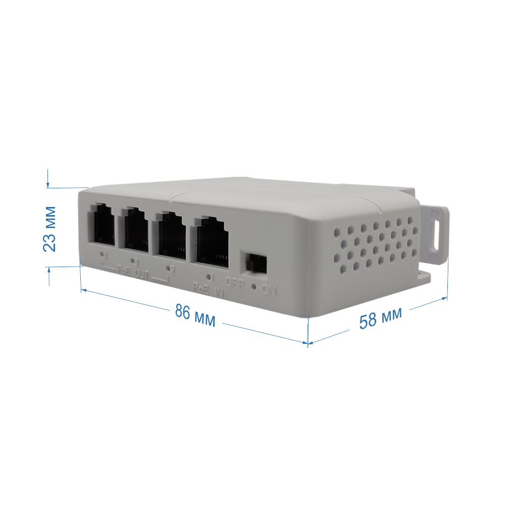 - Параметры портов входа/выхода Вход (PoE IN): PoE 802.3 af/at 30 Вт.Используемые контакты 1,2(+) 3,6(-) и 4,5(+) 7,8(-) Выход (1,2,3): PoE 802.3 af/at 8 Вт(каждый порт).Используемые контакты 1,2(+) 3,6(-).