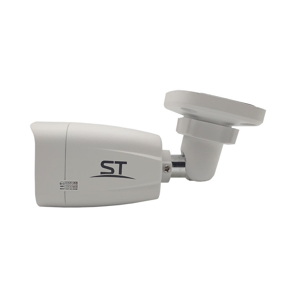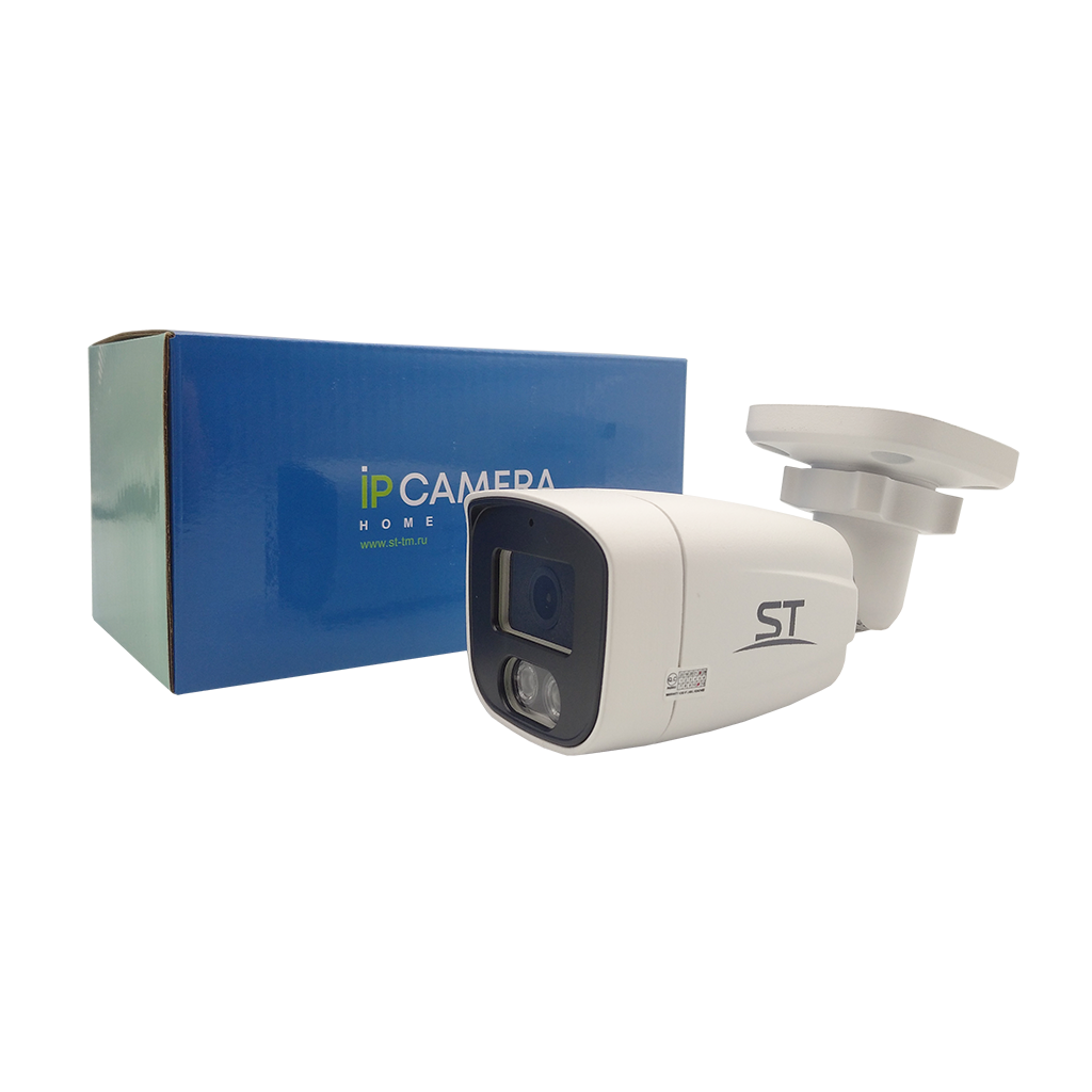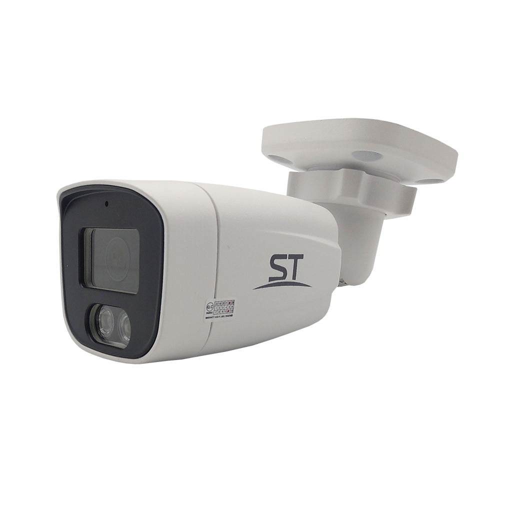 Видеокамера ST-190 IP HOME, цветная IP,Разрешение:5Mp (2880*1620),уличная,с ИК подсветкой, Цилиндрическая, Фокусн. расст.: 2,8mm (Гор.103° /Верт. 68°/ Диаг. 110°), Сенсор: 1/2,7" Progressive Scan CMOS, Дальн. ИК подсветки: до 30 м, Светочувствит. (мин. освещ.): 0,01 Lux (цвет) / 0 Lux (с IR), Кодек сжатия: H.264/ H.265, Напряжен. питания: 12В, ИК-фильтр: Механический, Функц. улучш. изобр.: BLC, WDR, AGC, MGC, Антитуман, 2D и 3D-DNR, AWB, MWB, ONVIF (Profile S), Smart IR: есть, UYC, Кол-во к/с: 5Mp - 20 к/с 4Mp - 20 к/с 3Mp - 20 к/с 2Mp - 25 к/с, Регулир. кронштейна: 3D-Ось, Раб. темп.: -50… +60°С, Степень защищен./вандалостойкость: IP66, Материал корпуса: Металл