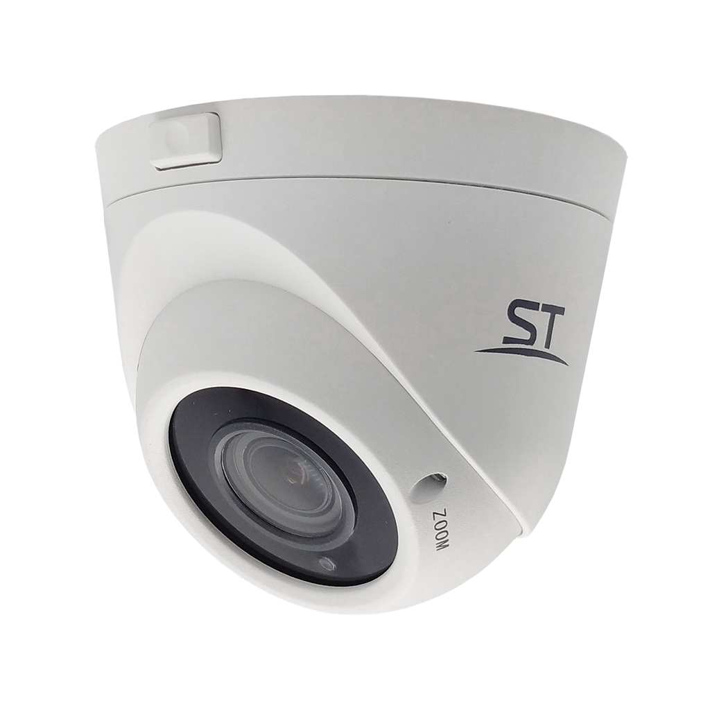 Видеокамера ST-2012, цветная,Разрешение:2,1МP (1920х1080)/960H,4-in-1 (4 режима работы: AHD/TVI/CVI/Analog), с ИК подсветкой, Купольная, Сенсор: 1/2,9" Progressive Scan CMOS, Фокусное расстояние: 2,8-12mm (соответствует 100-30° по горизонтали), Дальность ИК подсветки: до 30 м, 24 IR LED, Светочувствительность (мин. освещение): 0,01 Lux (цвет) / 0 Lux (с IR), Электронный затвор: 1/50-1/10000 сек., Напряжение питания: 12 В, Функции улучшения изображения: BLC,DWDR,AWB,MWB,3DNR,AGC, ИК-фильтр: Механический, Smart IR: Smart IR, 25 к/с, Регулировка кронштейна: 3D-Ось, Рабочая температура: -50°… +60°С, Степень защищенности/вандалостойкость: IP66, Материал корпуса: Металл, пластик