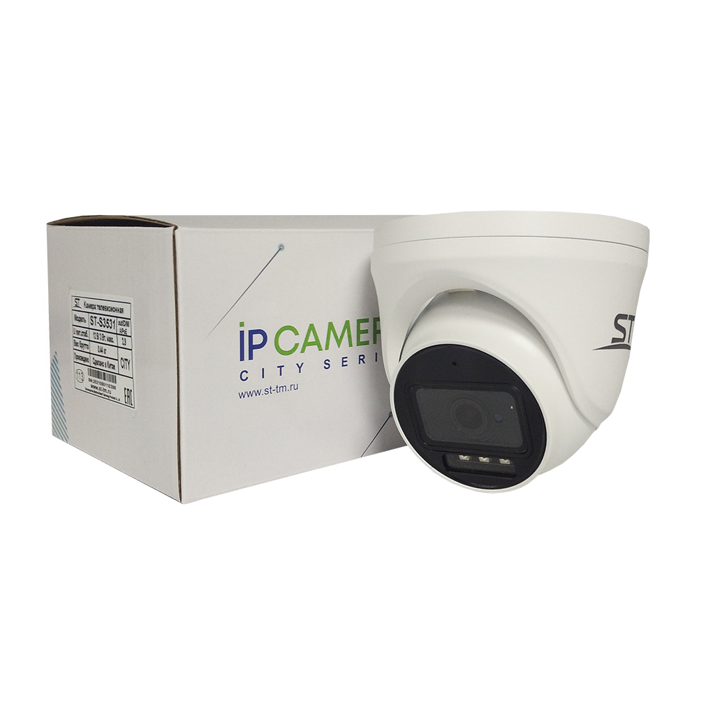 Видеокамера ST-S3531 CITY, цветная IP,Разрешение:3MP (2304*1296),с ИК подсветкой, Купольная, Фокусн. расст.: 2,8mm (Гор.105° /Верт. 52°/ Диаг. 116°), Сенсор: 1/2,9" Progressive Scan CMOS, Дальн. ИК подсветки: до 25 м, Светочувствит. (мин. освещ.): 0,01 Lux (цвет) / 0 Lux (ч/б c IR), Кодек сжатия: H.264 / H.265, Кодек сжатия аудио: G.711, Аудио вход/выход: RCA /-, Напряжен. питания: 12V±15%, PoE: 802.3af, ИК-фильтр: Механический, Функц. улучш. изобр.: BLC, HLC, DWDR, AGC, MGC, 3D-DNR, AWB, MWB, Антитуман, ONVIF (Profile S/ G/ T), Smart IR: Smart IR, SeeEasy/ MEeye, Кол-во к/с: 3Mp x 20 к/с 2Mp x 25 к/с, Регулир. кронштейна: 3D-Ось, Раб. темп.: -50…+60° С, Степень защищен./вандалостойкость: IP65 / -, Материал корпуса: Металл