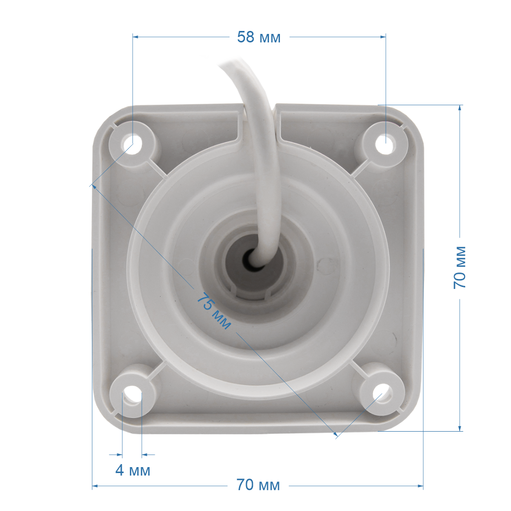 - Комплектность Камера с кабелем для подключения,крепеж (дюбель-пробка + шуруп),cтикер бумажный самоклеящийся - предо-стережение "Ведется видеонаблюдение",колпачок защитный, ПВХ, для изоляции LAN (RJ-45) разъема от влаги,шаблон бумажный для разметки крепления,паспорт,упаковочная коробка