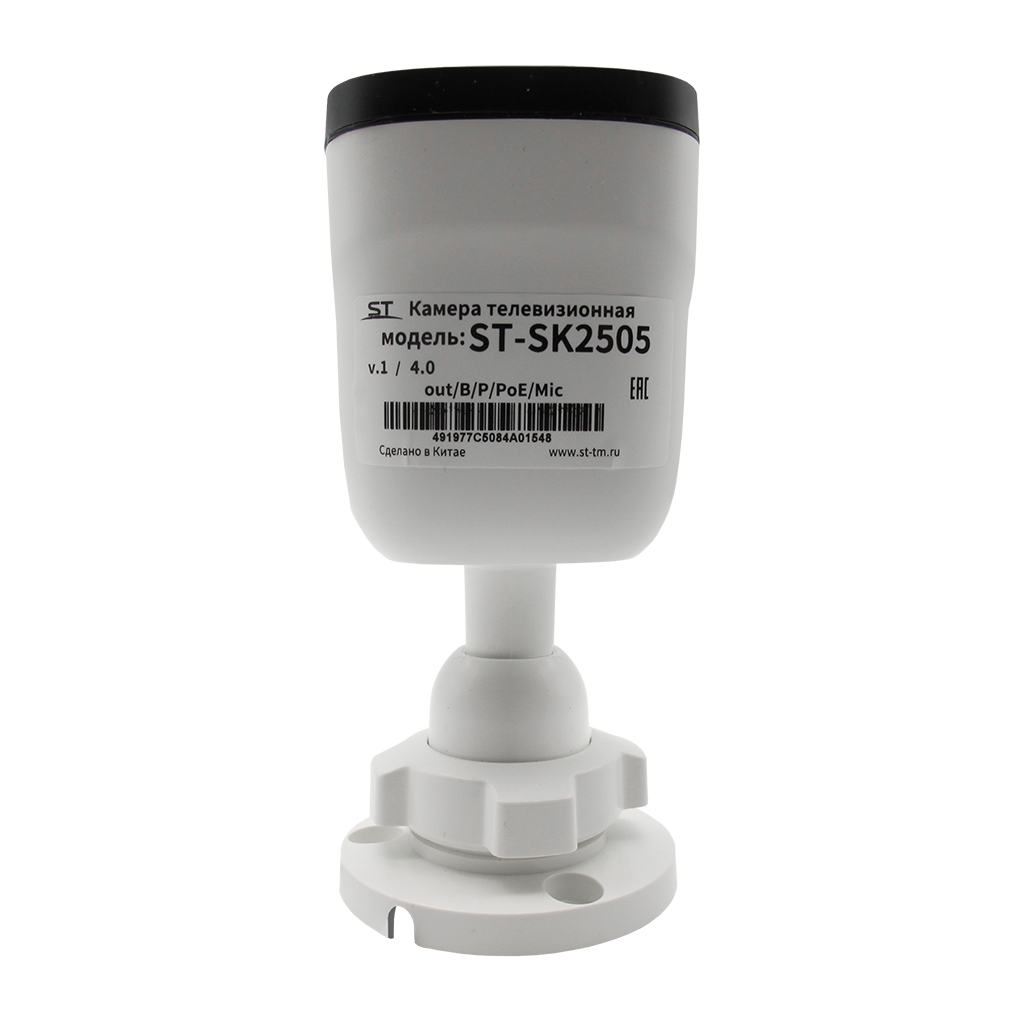 Видеокамера ST-SK2505 TOWN, цветная IP,Разрешение:2,1 Mp (1920*1080), с ИК подсветкой,4 приватные зоны,детектор движения, Цилиндрическая, Фокусн. расст.: 2,8 мм (Гор.94°/Верт. 53°/Диаг.108°), Сенсор: 1/3" Progressive scan CMOS, Дальн. ИК подсветки: до 30 м, Светочувствит. (мин. освещ.): 0,02 Lux (цвет) / 0 Lux (ч/б c IR), Кодек сжатия: S+265/H.265/H.264, Кодек сжатия аудио: G.711A/G.711U (8Kbps), Аудио вход/выход: Встроенный микрофон/-, PoE: 802.3af (вариант А/В), ИК-фильтр: Механический, Функц. улучш. изобр.: BLC /DWDR /HLC /AGC / 3D-DNR /AWB /MWB/ Антитуман, Smart IR: Есть, Нет, Кол-во к/с: PAL - 25 к/с NTSC - 30 к/с, Регулир. кронштейна: 3D-Ось, Раб. темп.: -30…+60 С, Степень защищен./вандалостойкость: IP67 / -, Материал корпуса: Пластик
