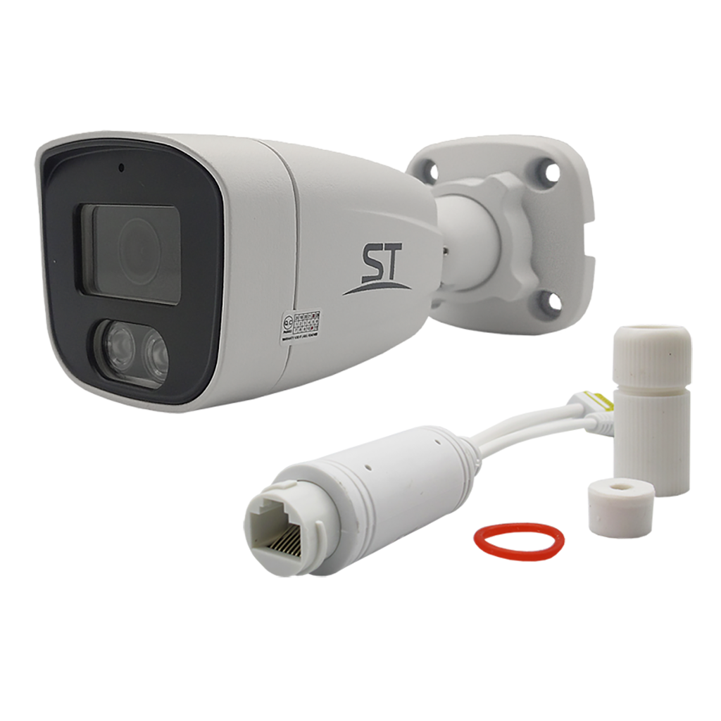 Видеокамера ST-SX4541 POE, цветная IP,Разрешение:4 Mp (2560*1440),уличная,с ИК подсветкой, Цилиндрическая, Фокусн. расст.: 2.8 мм (Гор.103°/Верт.56,8°/Диаг.121°), Сенсор: 1/2,9" Progressive Scan CMOS, Дальн. ИК подсветки: до 30 м, Светочувствит. (мин. освещ.): 0,01Lux(цвет) / 0,001Lux (с IR), Кодек сжатия: H.264, H.265, Кодек сжатия аудио: G.711 А, Аудио вход/выход: 1 (RCA) / -, Напряжен. питания: 12В, PoE: Опция* Сплиттер (802.3af(вариант А/В)), ИК-фильтр: Механический, Функц. улучш. изобр.: BLC, DWDR, 2D и 3D-DNR, AGC, Onvif 2.6 (Profile S), Smart IR: есть, Xmeye, iCSee, Кол-во к/с: 20 к/с, Регулир. кронштейна: 3D-Ось, Раб. темп.: -45…+60°С, Степень защищен./вандалостойкость: IP66, Материал корпуса: Металл