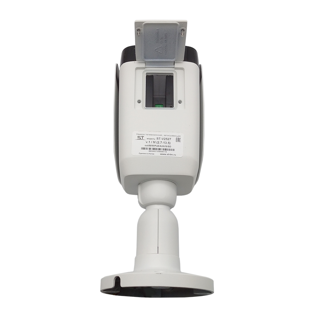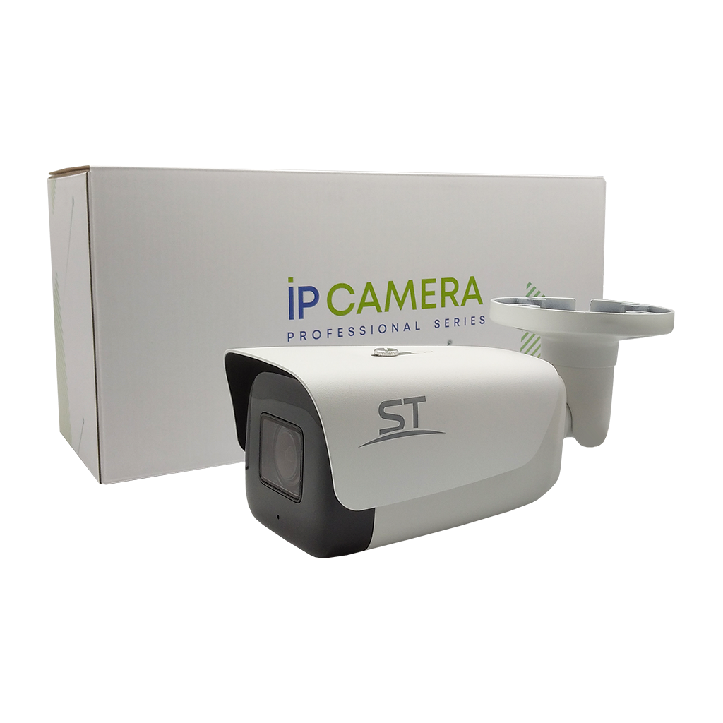 Видеокамера ST-V2527 PRO STARLIGHT, цветная IP,Разрешение:2,1 MP (1920х1080), с ИК подсветкой,обнаружение закрытия объектива,пересечение линии,обнаружение вторжения в зону, Цилиндрическая, Фокусн. расст.: 2,7-13,5mm (Гор. 102.8°~31.3° / Верт. 57.3°~17.6° / Диаг: 117,7°~35,9°), Сенсор: 1/2,8" Sony starlight technology, Дальн. ИК подсветки: до 80 м, Тревожн. вход/выход: 2/1, Светочувствит. (мин. освещ.): 0,001 Lux (цвет) / 0 Lux (ч/б c IR), Кодек сжатия: S+265/H.265/H.264/M-JPEG, Кодек сжатия аудио: G.711A/G.711U/ADPC M_D/AAC _LC(8K~48Kbps), Аудио вход/выход: 1/1, Налич. слота для SD (типы поддерж.карт): microSD (UHS C lass 3 или выше), Макс. объем SD: до 512Gb, Напряжен. питания: 12V±25%, PoE: 802.3af (вариант А/В), ИК-фильтр: Механический, Функц. улучш. изобр.: BLC,True WDR(120dB),HLC,AGC,MGC,3D-DNR,AWB,MWB,Антитуман, Smart IR: есть, EasyLive/VideoSight, Встр. микр./динамик: Встроенный микрофон, Кол-во к/с: PAL 25 к/с NTSC 30 к/с, Регулир. кронштейна: 3D-Ось, Раб. темп.: -50…+60°С, Степень защищен./вандалостойкость: IP67 / -, Материал корпуса: Металл