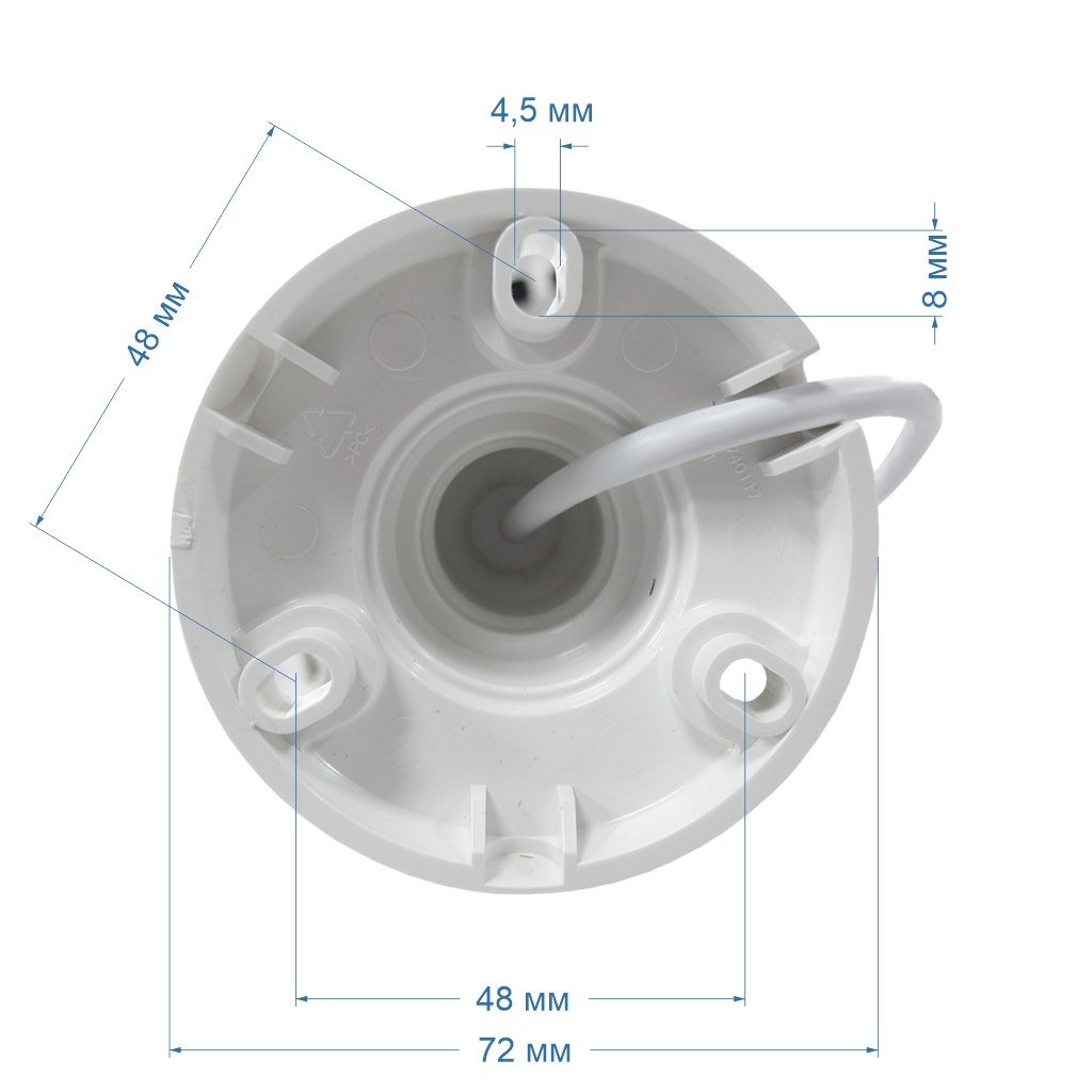 - Комплектность Камера с кабелем для подключения,крепеж (дюбель-пробка + шуруп),cтикер бумажный самоклеящийся предостережение "Ведется видеонаблюдение",колпачок защитный, ПВХ, для изоляции LAN (RJ-45) разъема от влаги,шаблон бумажный для разметки крепления,паспорт,упаковочная коробка