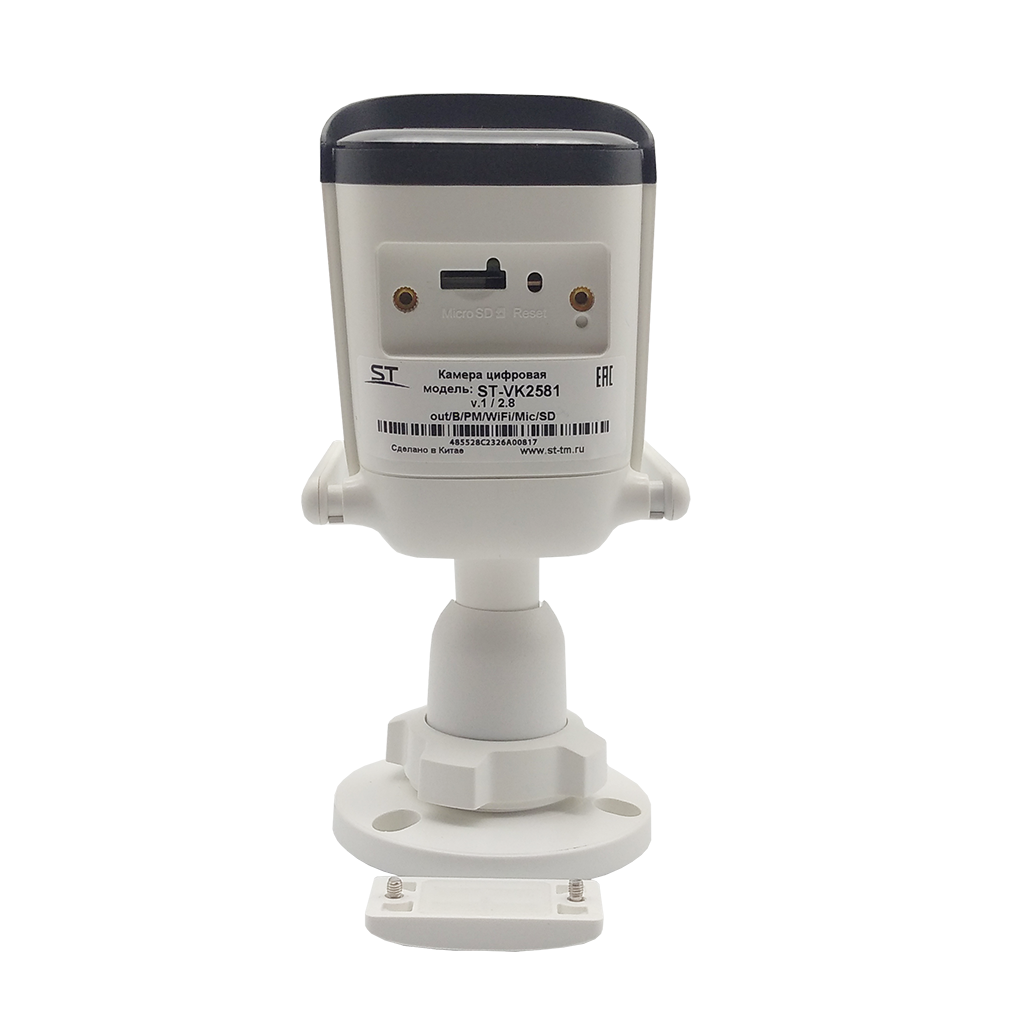Видеокамера ST-VK2581 PRO WiFi, цветная IP,Разрешение:2,1MP (1920*1080), с ИК подсветкой,детектор движения, обнаружение закрытия объектива, пересечение линии,обнаружение вторжения в зону,4 приватные зоны, Цилиндрическая, Фокусн. расст.: 2,8mm (Гор.107° / Верт. 46,8°/ Диаг. 116,8°), Сенсор: 1/2,8" Progressive scan CMOS, Дальн. ИК подсветки: до 50 м, Светочувствит. (мин. освещ.): 0,02 Lux (цвет) / 0 Lux (ч/б c IR), Кодек сжатия: S+265/H.265/H.264, Кодек сжатия аудио: G.711/G.711U/ADPCM (8K~48Kbps), Аудио вход/выход: Встроенный микрофон/-, Дополнит. возможности: WiFi, Налич. слота для SD (типы поддерж.карт): microSD (UHS Class 3 или выше), Макс. объем SD: до 512Gb, Напряжен. питания: 12V±25%, ИК-фильтр: Механический, Функц. улучш. изобр.: BLC, DWDR, HLC, AGC, MGC, 3D-DNR, AWB, MWB, Антитуман, Smart IR: есть, EasyLive, Кол-во к/с: PAL 25 к/с, Регулир. кронштейна: 3D-Ось, Раб. темп.: -50…+60°С, Степень защищен./вандалостойкость: IP67 / -, Материал корпуса: Металл, пластик