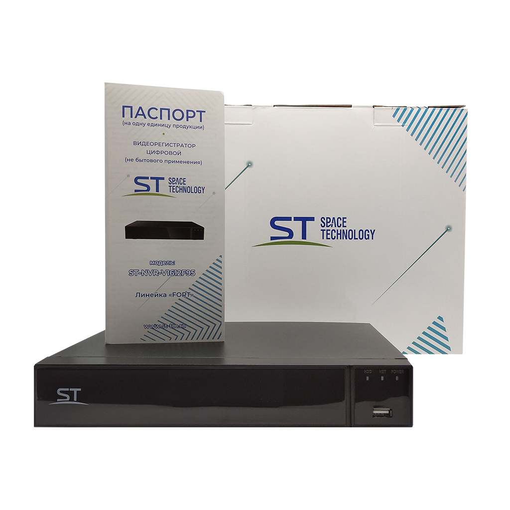 Видеорегистратор ST-NVR-V1612F95 PRO, цифровой, режим работы:16IP (12Mp) предназначен для обработки видео и аудио сигналов, поступающих от видеокамер систем охраны и микрофонов, с последующей записью на HDD, Всего видеовыходов: 2 (HDMI, VGA), HDMI:4K (3840x2160), 4MP(2560x1440), 1920x1080p, 1280x1024, 1280x720, 1024x768 VGA:1920x1080p, 1280x1024, 1280x720, 1024x768, Поддерживаемые видеокодеки: H.264/H.264+/H.265/H.265+, Поддерживаемые аудиокодеки: G.711, Запись IP камеры (разрешение / скорость): до 12Мп (25 к/с (зависит от видеокамеры)), 1 HDD 1 SATA 3.0 до 10Тб, Сетевой интерфейс: RJ-45 (10/100/1000 Mbps), P2P: CV380, IPEYE, Поддержка платформ: Android/Iphone/Windows (PC), Напряжение питания/ потребляемая мощность (без HDD): 12В / 10Вт, Рабочая температура: -10°C ~ +55°C, Габариты, мм.: 260 х 230 х 43 мм