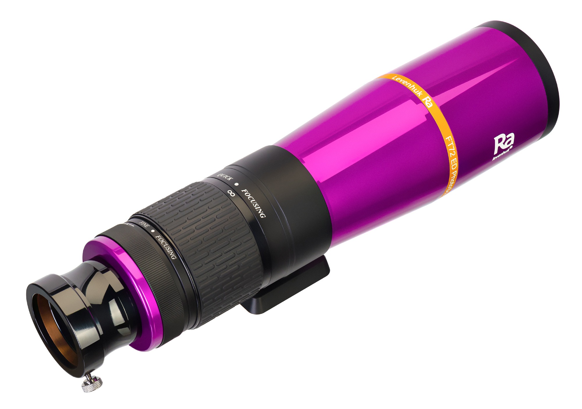 Фототелескоп Levenhuk Ra FT72 ED Kit – это апохроматический рефрактор с автоматизированной монтировкой, необходимыми оптическими аксессуарами и кейсом для оптической трубы. Он отлично подходит для визуальных наблюдений космоса и наземных объектов, но основное его призвание – это фотография, причем как астрономическая, так и наземная. Кадры получаются четкими, детализированными и контрастными, а фокусироваться можно на объектах, удаленных всего на 3 метра.