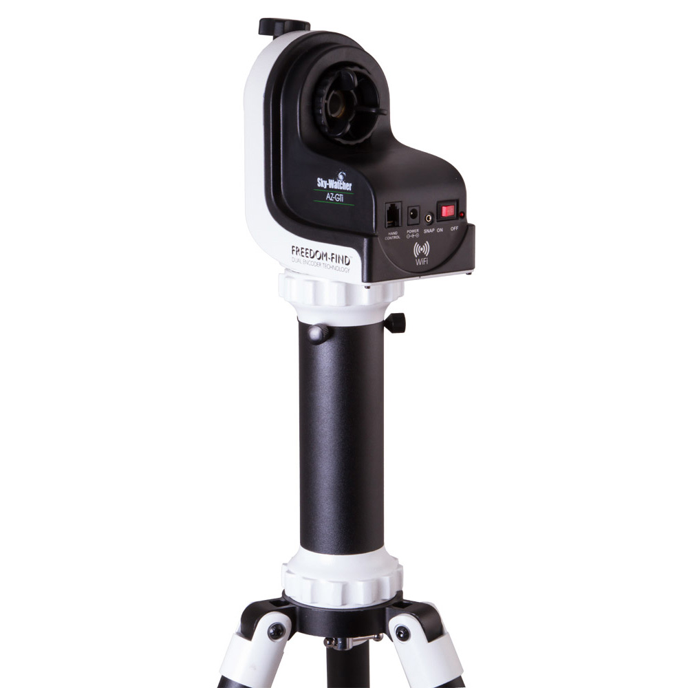 Автоматизированная азимутальная монтировка на треноге Star Adventurer обеспечит удобство использования телескопа. Электроприводы обеих осей и запатентованная система Freedom-Find упрощают настройку и позиционирование телескопа, как и поиск нужных объектов на небе. Управлять монтировкой можно с помощью пульта Sky-Watcher SynScan (нет в комплекте), с мобильного устройства через Wi-Fi (установив приложение) или вручную. Тренога имеет регулируемые по высоте опоры, так что телескоп будет удобно использовать даже на неровной поверхности. В комплекте идет лоток для аксессуаров.