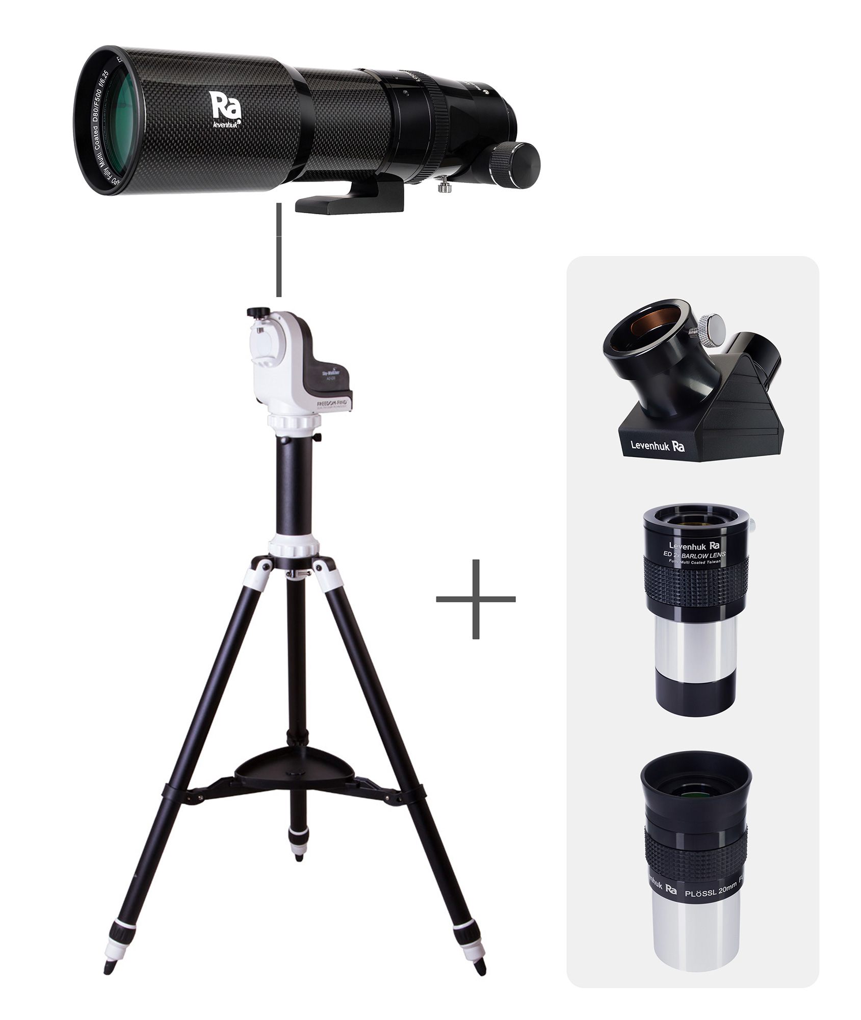 Levenhuk Ra R80 ED Doublet Carbon Kit – профессиональный короткофокусный телескоп для астрофотографии и визуальных наблюдений ближнего и дальнего космоса. Состоит из оптической трубы, построенной по апохроматической схеме, автоматизированной азимутальной монтировки и необходимых оптических аксессуаров. Создает изображение премиум-уровня, эффективно работает даже по тусклым объектам, удобно и просто управляется – это отличный выбор для получения максимально ярких впечатлений от астрономических наблюдений.
