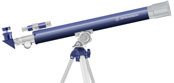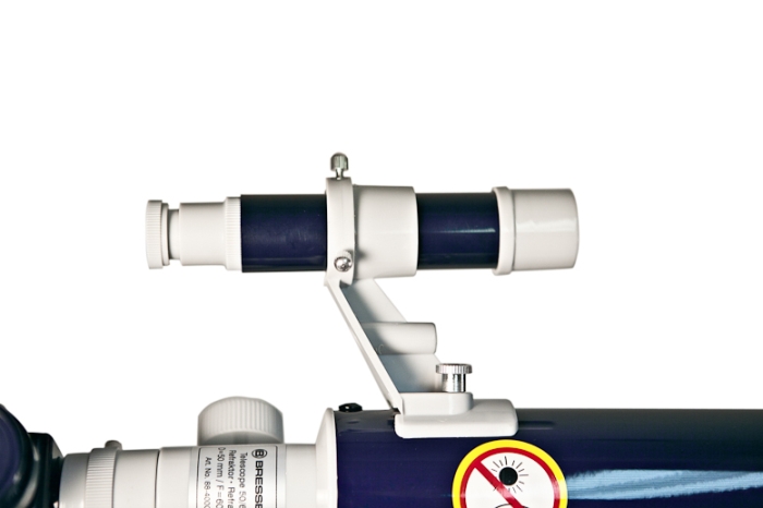 Труба телескопа Bresser Junior 50/600 устанавливается на азимутальную монтировку. Такая монтировка позволяет наблюдать и за астрономическими, и наземными объектами. Кроме того, такая монтировка очень удобна и понятна для начинающих астрономов. На телескоп установлен оптический искатель 5х24, который облегчает наведение прибора на объект.