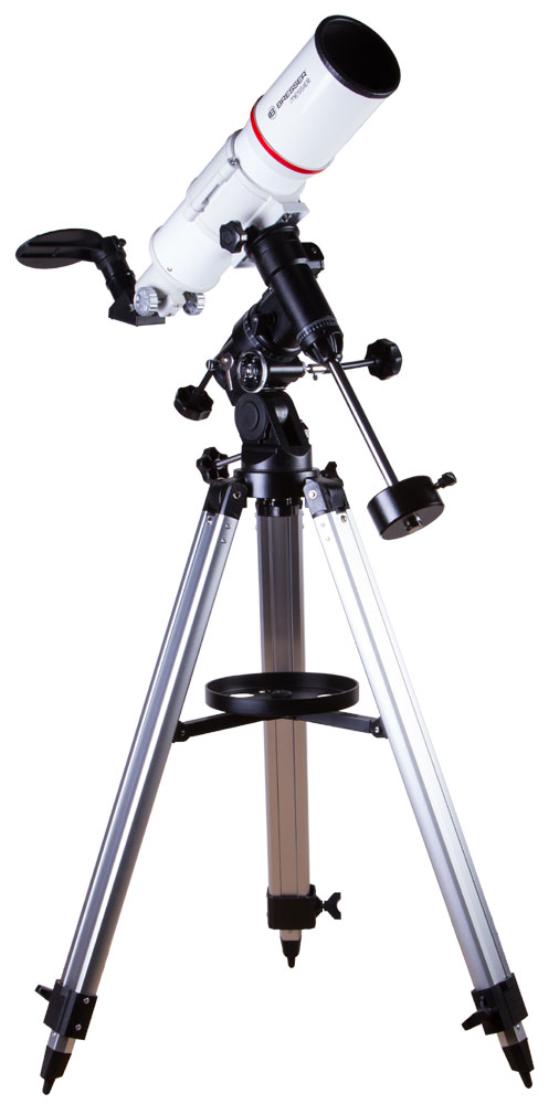 Основной тубус регулируется надежной и точной экваториальной монтировкой с механизмами тонких движений по обеим доступным осям. Последняя в свою очередь закреплена на прочной алюминиевой треноге с уровнем, обеспечивающей стабильное положение телескопа на любой горизонтальной поверхности.