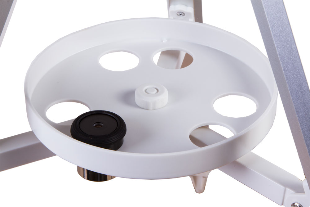 Телескоп управляется простой азимутальной монтировкой с двумя степенями свободы, фиксируется на прочной алюминиевой раскладной треноге.