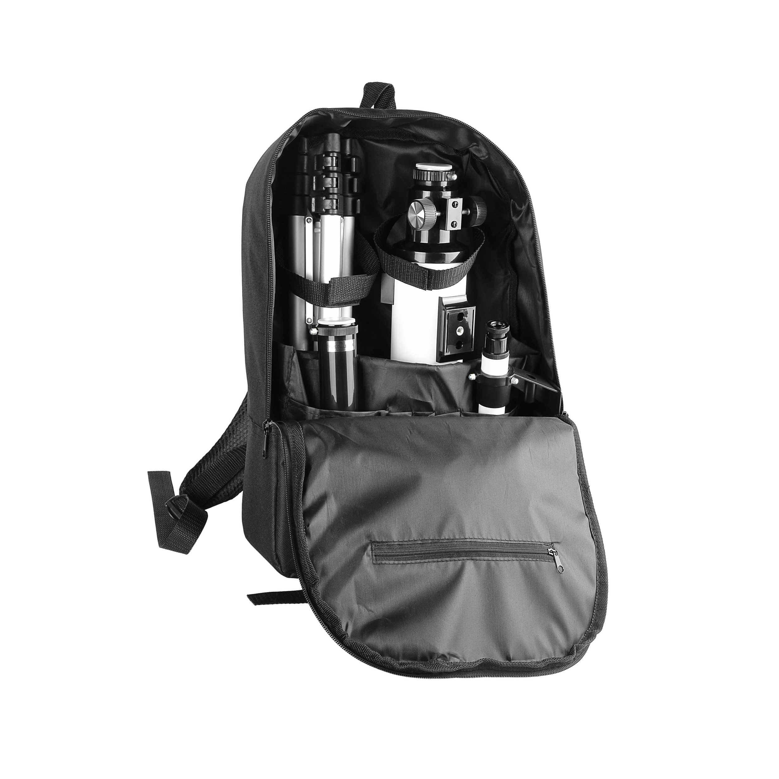 Все элементы и детали помещаются в компактный тканевый рюкзак – телескоп удобно носить с собой, а плотные стенки рюкзака защищают устройство во время транспортировки.