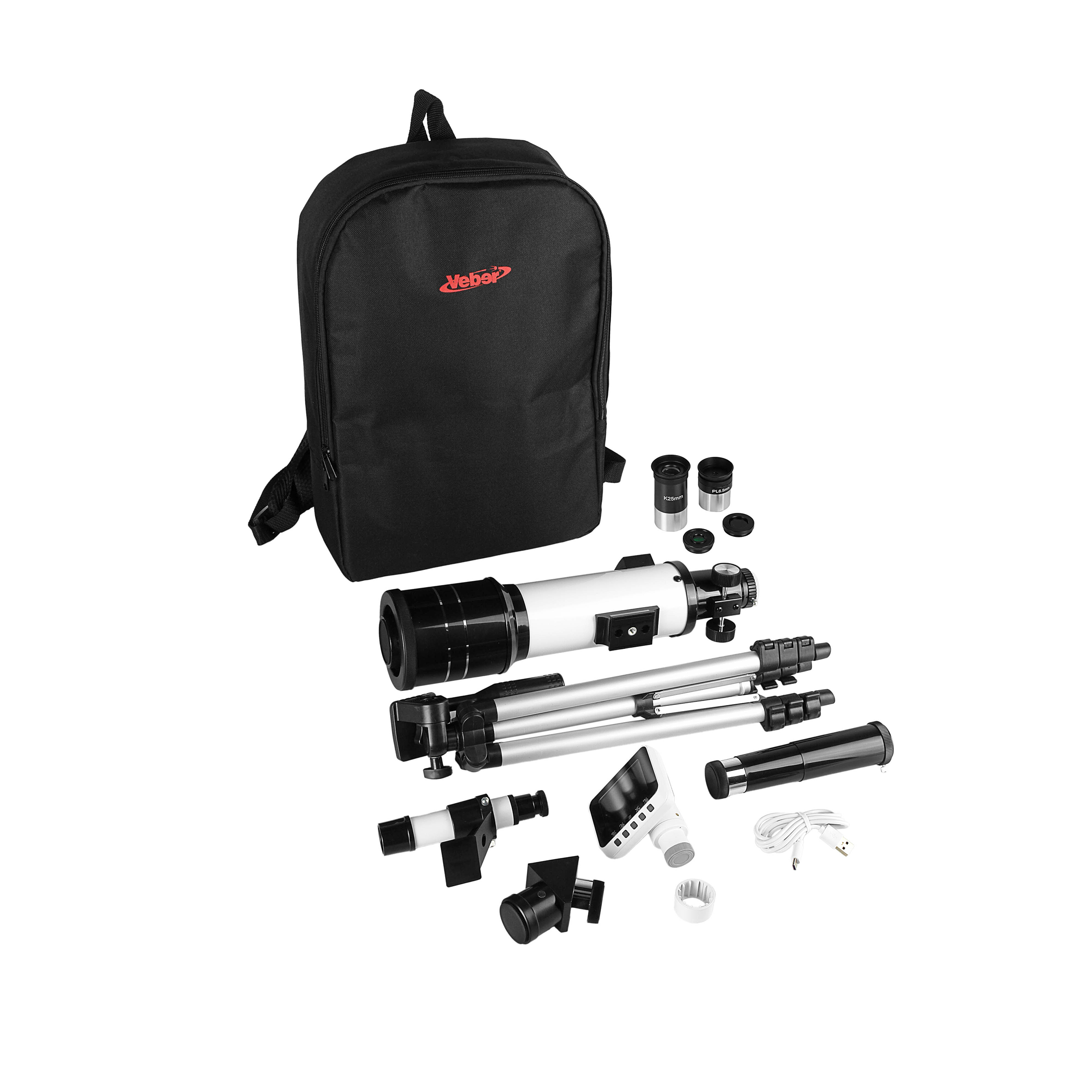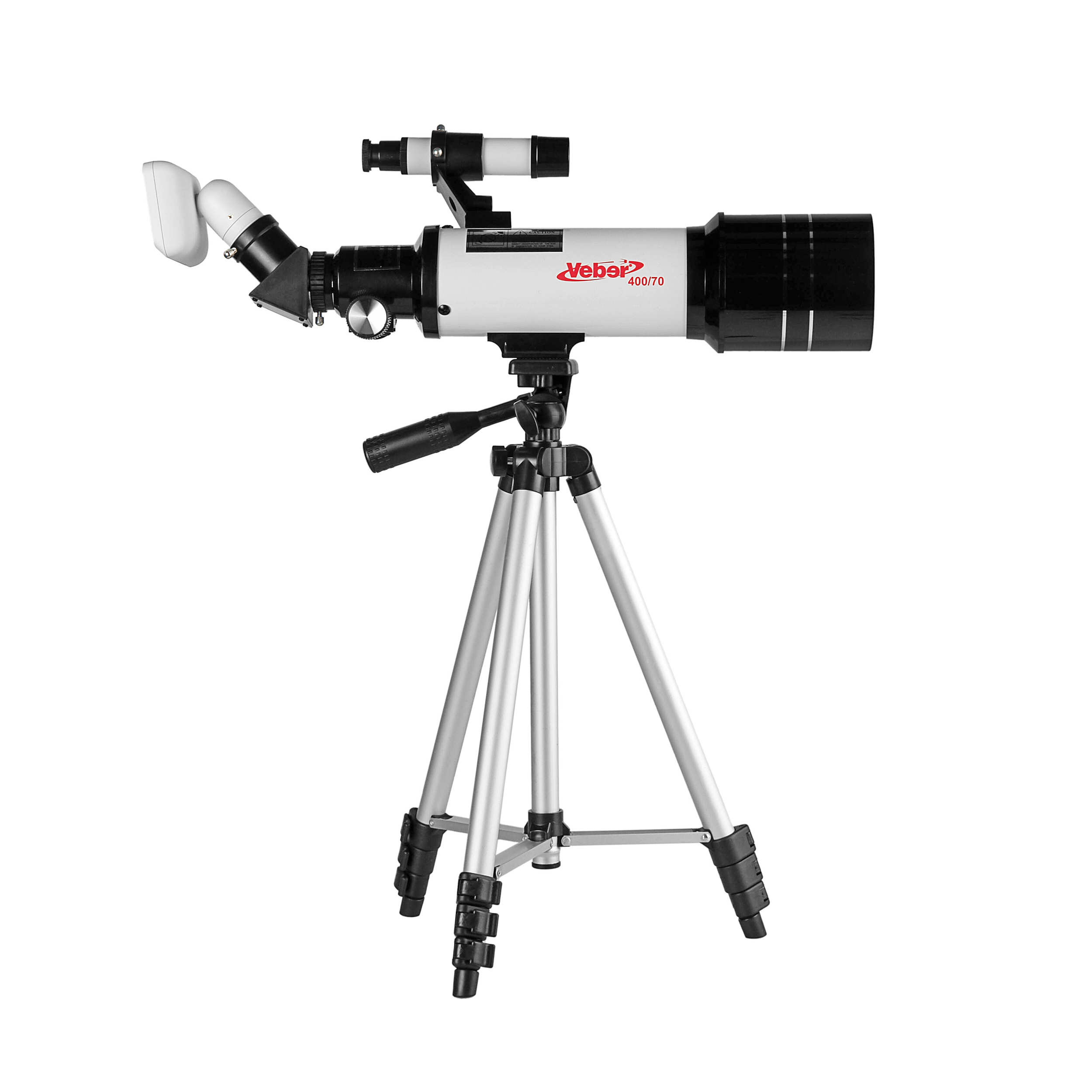 Телескоп Veber Эврика M400/70 WiFi – компактный и легкий линзовый телескоп (рефрактор), который удобно брать с собой в поездки. Благодаря простой сборке и управлению он отлично подходит для начинающих астрономов-любителей.