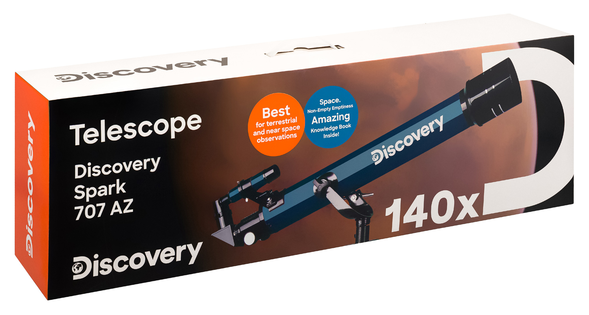 Если вы мечтаете о первом в жизни телескопе или ищете подарок для начинающего астронома, обратите внимание на телескоп Levenhuk Discovery Spark 707 AZ с книгой. В нем сочетается все, что нужно для первого знакомства со звездным небом: простое управление, доступ к широкому спектру астрономических наблюдений, богатая комплектация. С его помощью можно разглядывать детали лунных пейзажей, наблюдать планеты земной группы и даже увидеть в общих чертах самые яркие объекты дальнего космоса. Возможность изучать наземные объекты днем, используя телескоп как подзорную трубу, тоже присутствует.