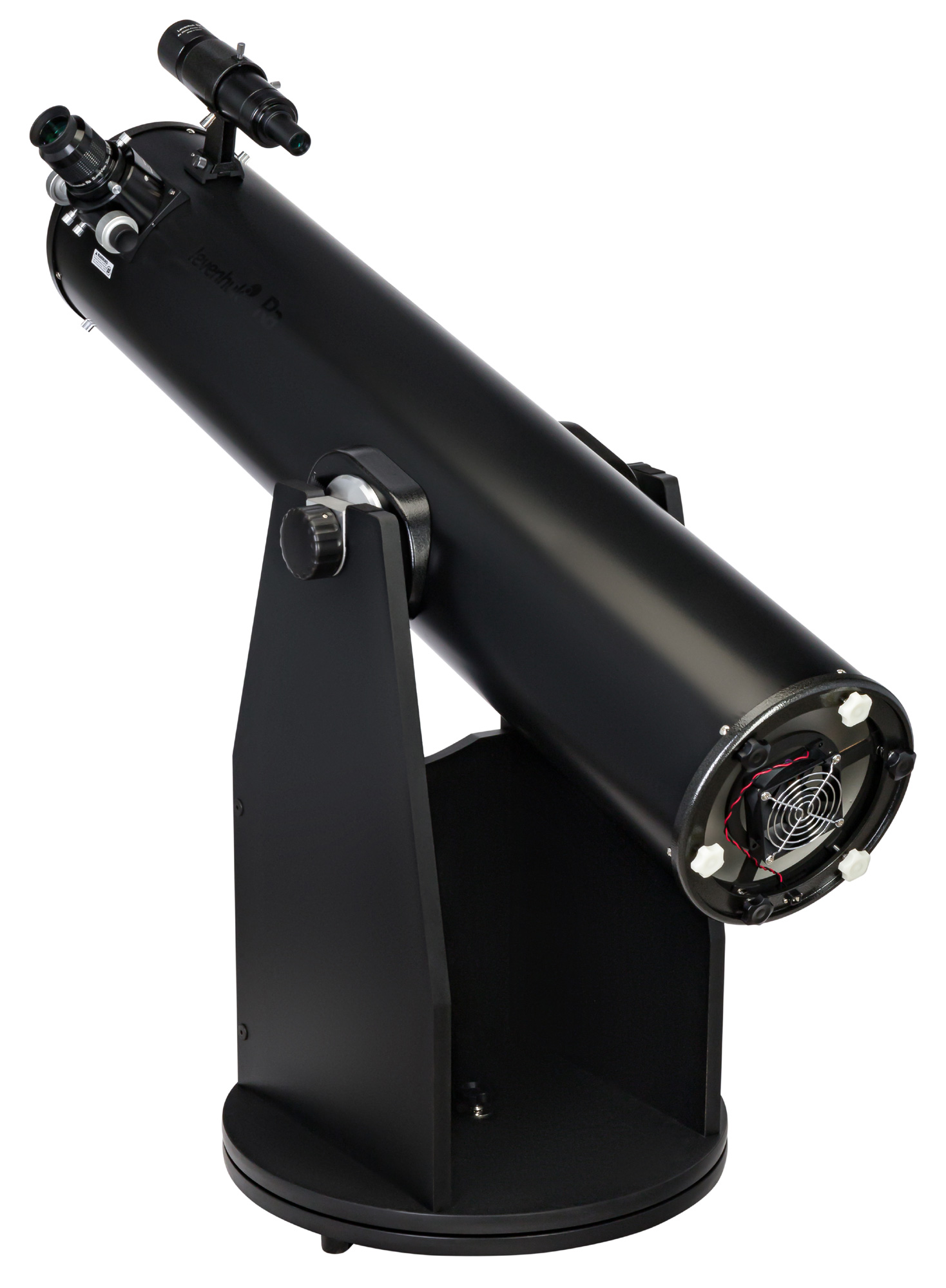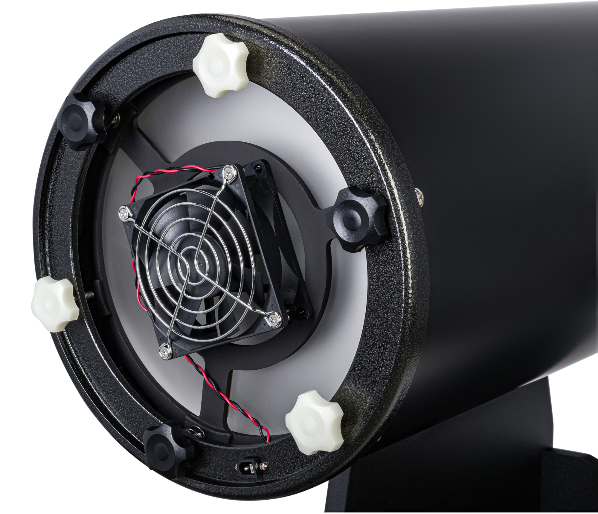 На задней крышке оптической трубы расположен вентилятор. Он ускоряет термостабилизацию оптики практически в два раза, т. е. к наблюдениям можно приступать намного быстрее. Охлаждение работает от батареек, которые приобретаются отдельно.