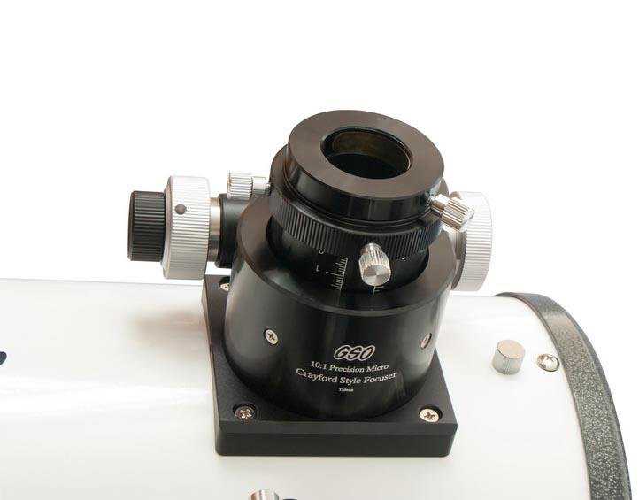 Телескоп GSO Dob 8" Delux комплектуется не только оптическим искателем с ахроматическими линзами, но и двумя окулярами. Первый, Super Plössl 9 мм, является базовым и используется для прицельного изучения космических объектов. Он устанавливается в фокусер при помощи адаптера-переходника 2"–1,25". Второй – это профессиональный 2-дюймовый окуляр Erfle с широким полем зрения. Это прекрасный выбор для обзорного наблюдения космического пространства.