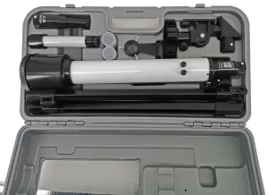 Телескоп собран по схеме рефрактора из стеклянных оптических элементов. Апертура составляет 50 мм. В комплекте есть необходимые оптические аксессуары, которые позволят сразу же приступить к наблюдениям. Выбрать объекты для исследования можно при помощи карты звездного неба, которая также включена в комплектацию.