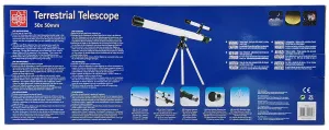 Телескоп установлен на азимутальную монтировку и алюминиевую треногу, высоту которой можно регулировать. Прибором легко управлять, он не требует особых знаний и умений. EDU-TOYS 50x станет прекрасным проводником в мир увлекательной астрономии!