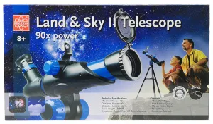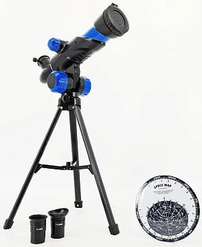 Телескоп игрушечный EDU-TOYS 90x – это рефрактор с коротким фокусным расстоянием, который разработан специально для детей. В него можно наблюдать Луну и метеорные потоки, также он пригодится для знакомства с основным созвездиями и изучения наземных ландшафтов. Этот телескоп станет прекрасным подарком любознательному ребенку, которому интересен космос.