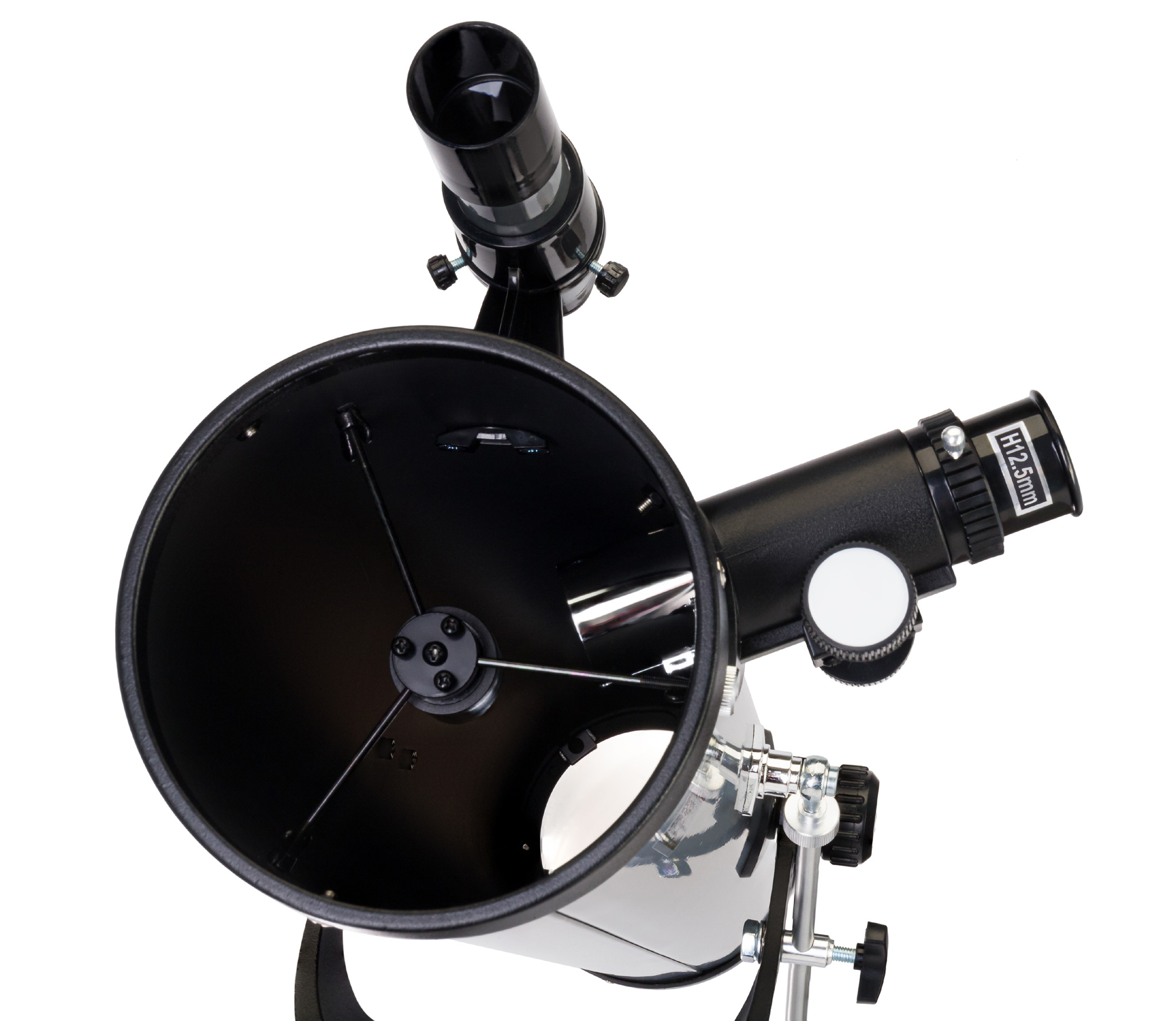 Оптические элементы телескопа сделаны из стекла с антибликовым покрытием. Зеркало имеет сферическую форму и создает хорошее по качеству изображение, не привносит искажений в картинку вплоть до максимально полезного увеличения. Для наведения оптической трубы на объекты используется вилочная азимутальная монтировка. На вертикальной оси расположен микровинт, который позволяет проводить более точную наводку.