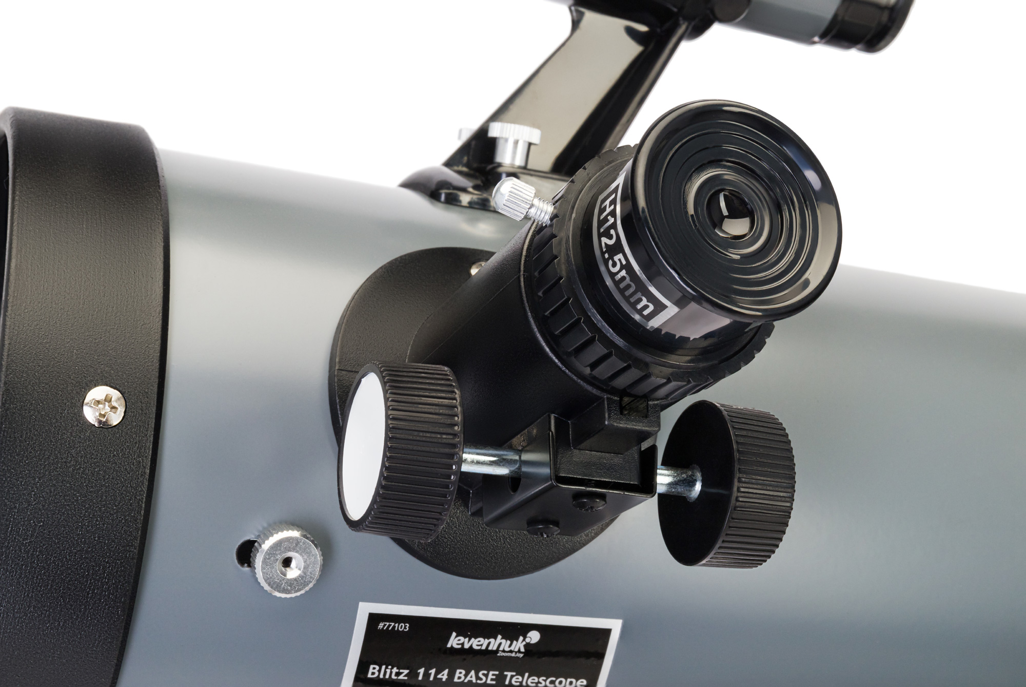 Levenhuk Blitz 114 BASE – классический рефлектор Ньютона для астрономических наблюдений. Лучше всего в него рассматривать объекты дальнего космоса: шаровые скопления, двойные звезды, планетарные и диффузные туманности. Ближний космос тоже хорошо различим вплоть до Сатурна. Так как телескоп имеет классический фокусер 1,25 дюйма, к нему подходит большинство оптических аксессуаров, которые широко представлены в продаже. Тем не менее, в комплектацию уже включены три окуляра и линза Барлоу, что позволяет сразу же приступить к наблюдениям.